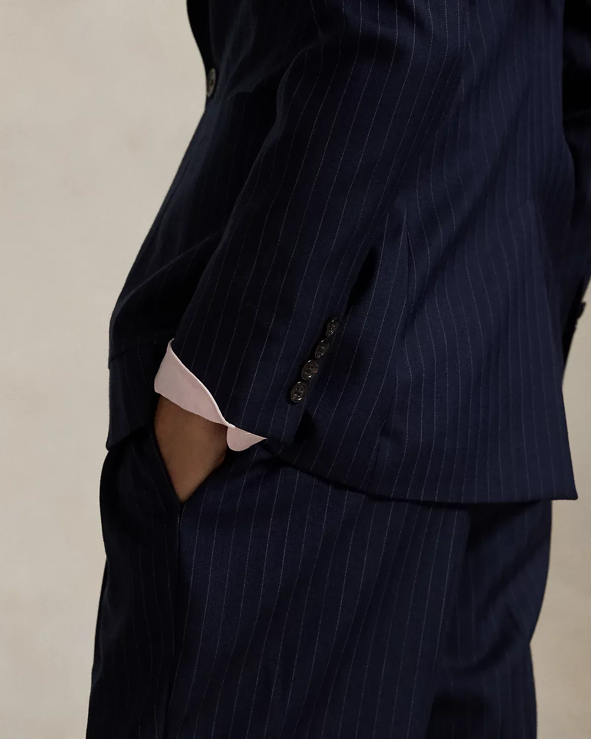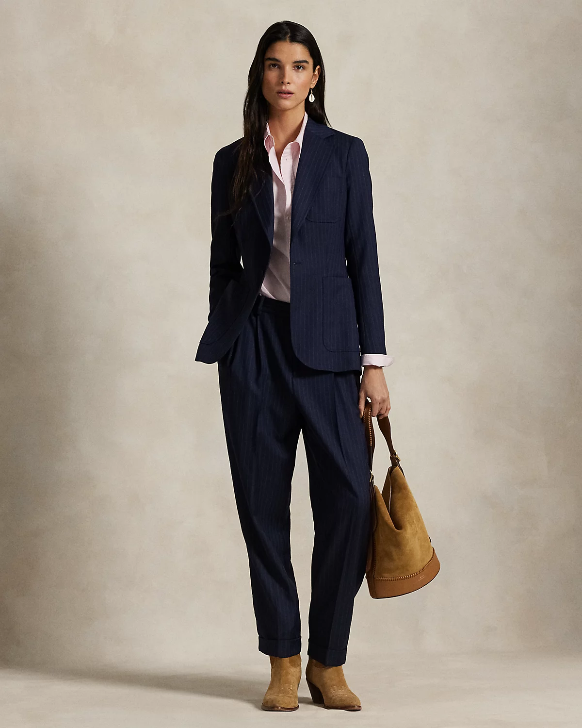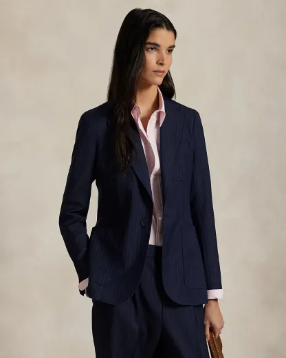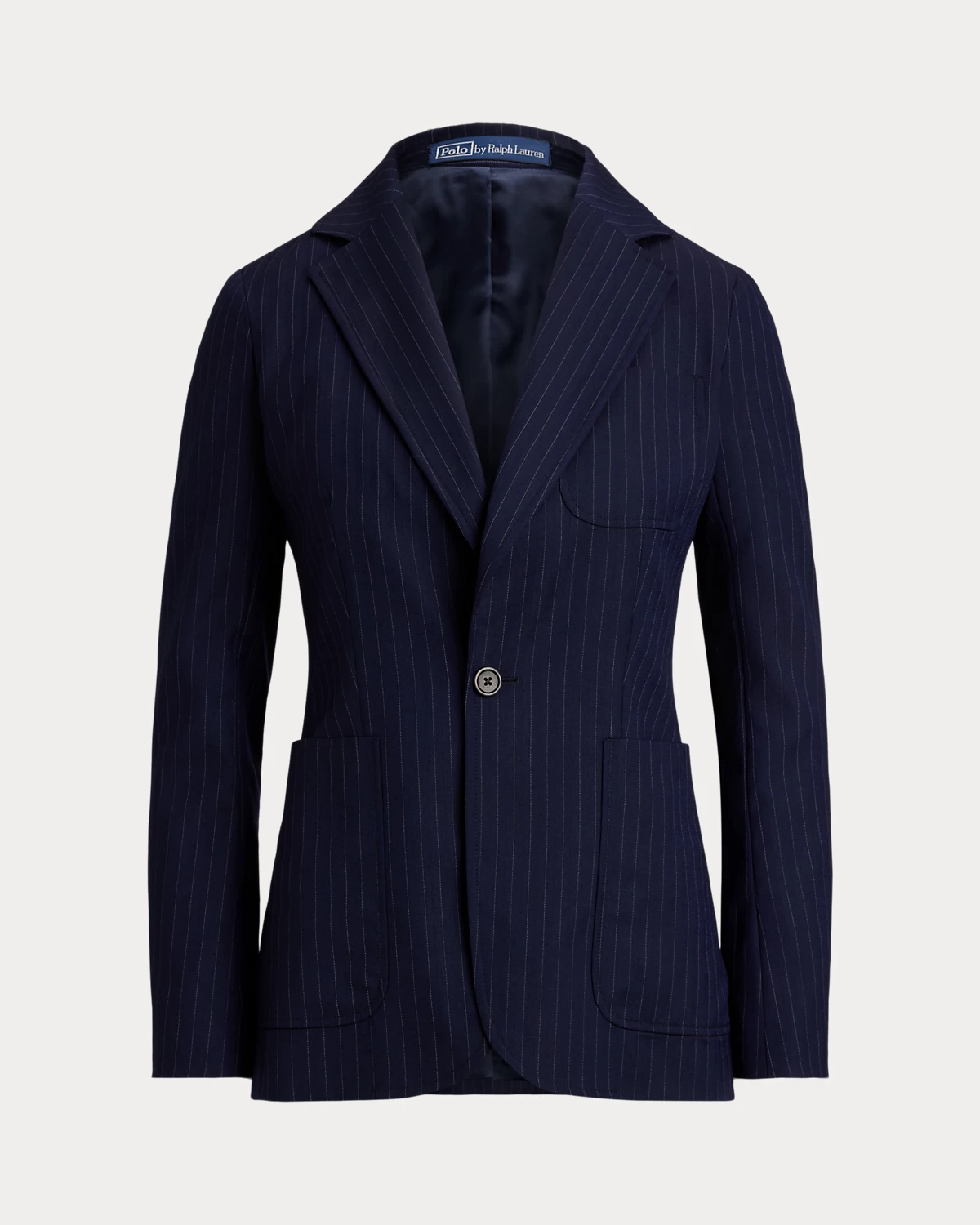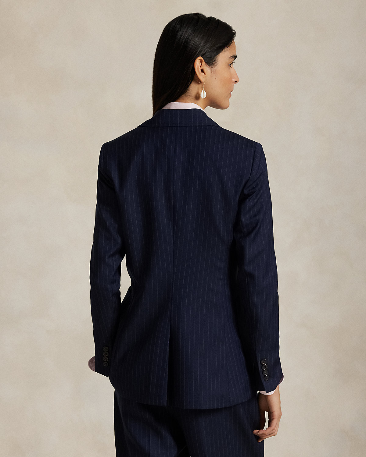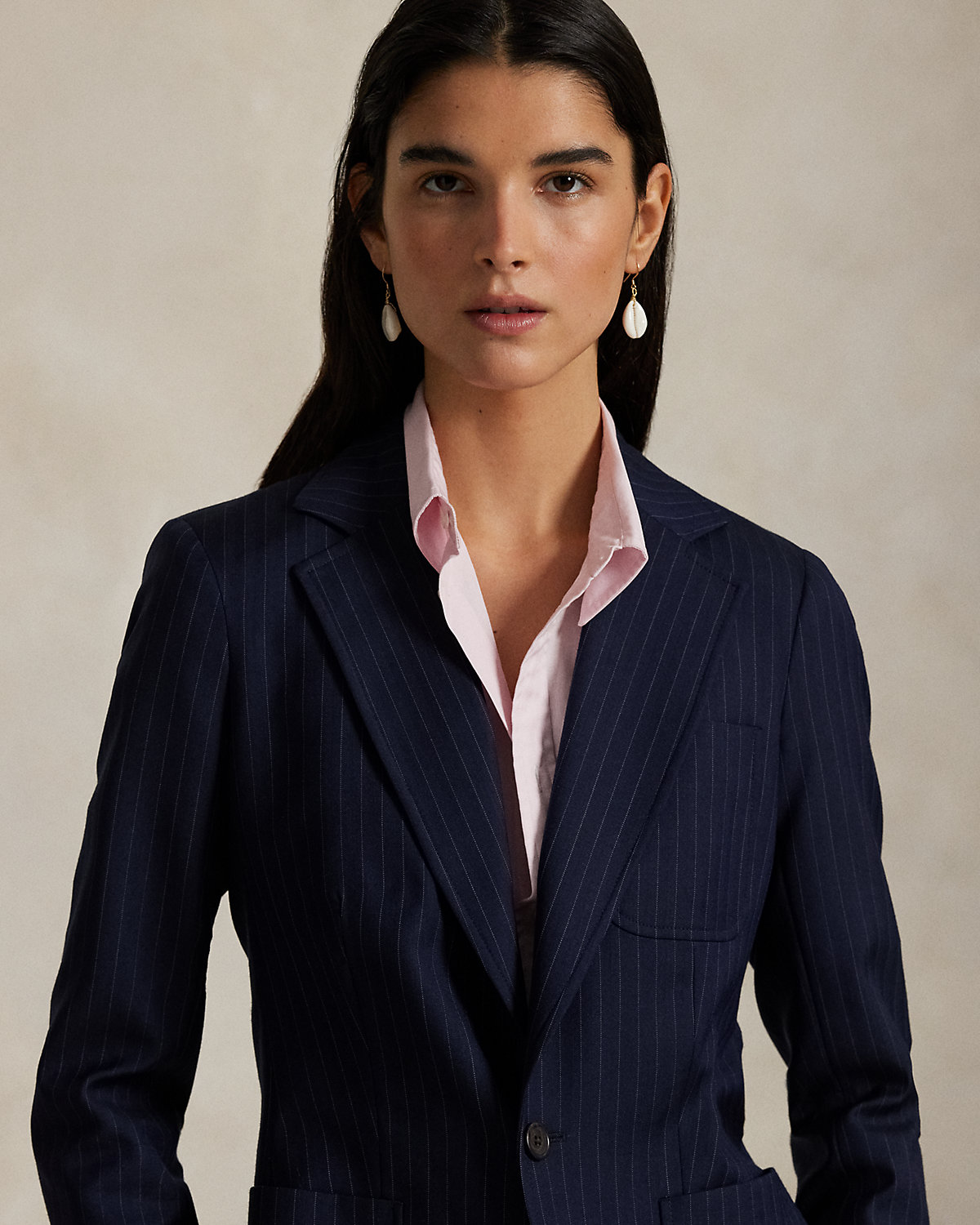 Tailored with a blend of Italian wool and cashmere, this single-breasted blazer features menswear-inspired pinstripes and a smooth cupro twill lining.