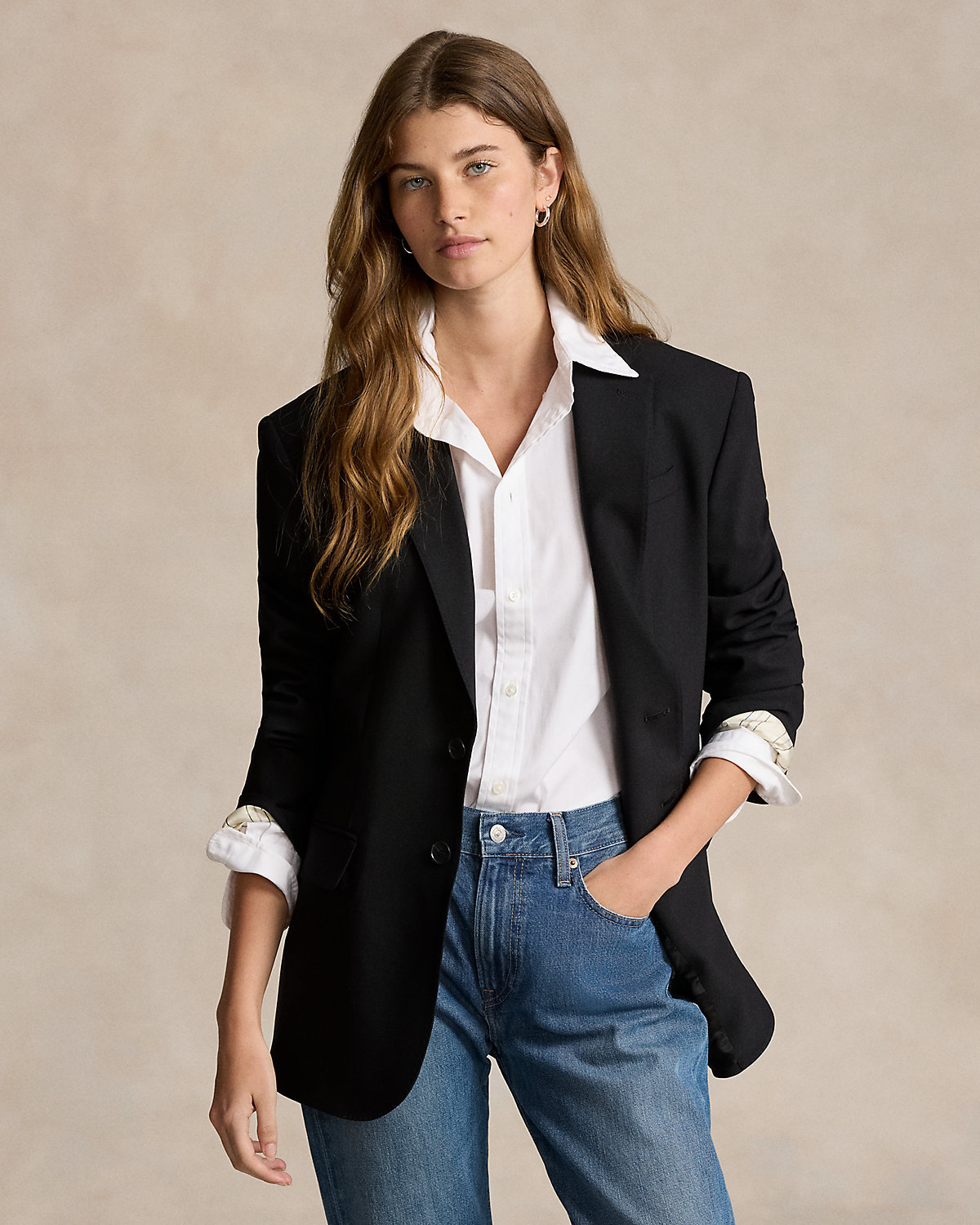 Tailored in Portugal with Italian fabrics, this blazer merges a straight fit with structured shoulders and a two-div silhouette. Its stretch wool-blend shell is fully lined with smooth, lightweight twill.