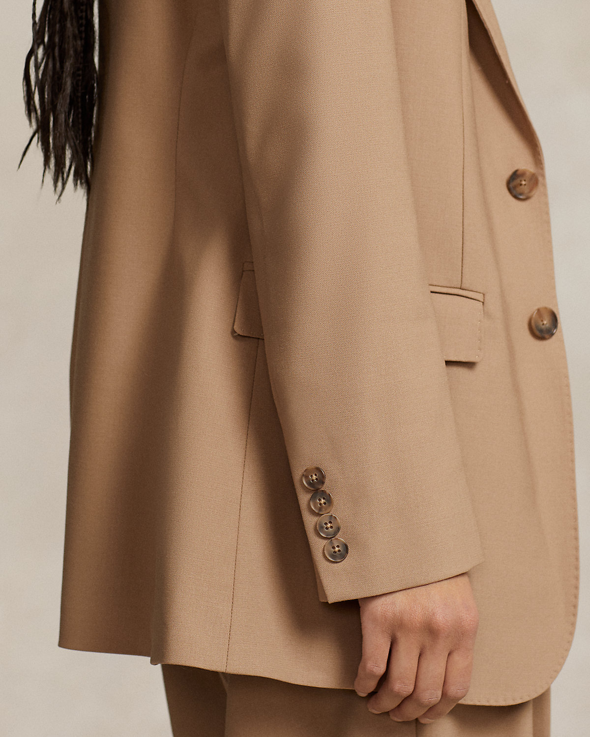 - Shell: 97% wool, 3% elastane. Body lining: 100% viscose. Sleeve lining: 52% viscose, 48% acetate.