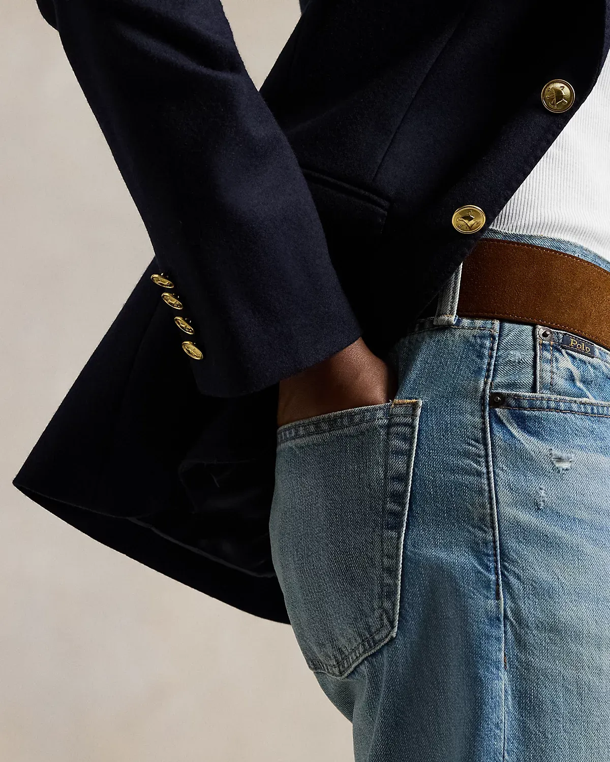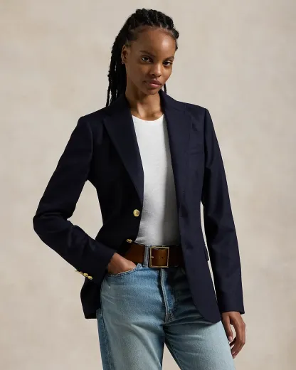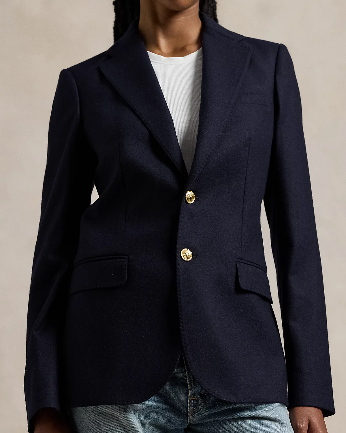 This expertly tailored, two-div blazer is designed with a relaxed silhouette through the body and is slim through the hips. It’s made with Italian wool flannel and fully lined with twill.