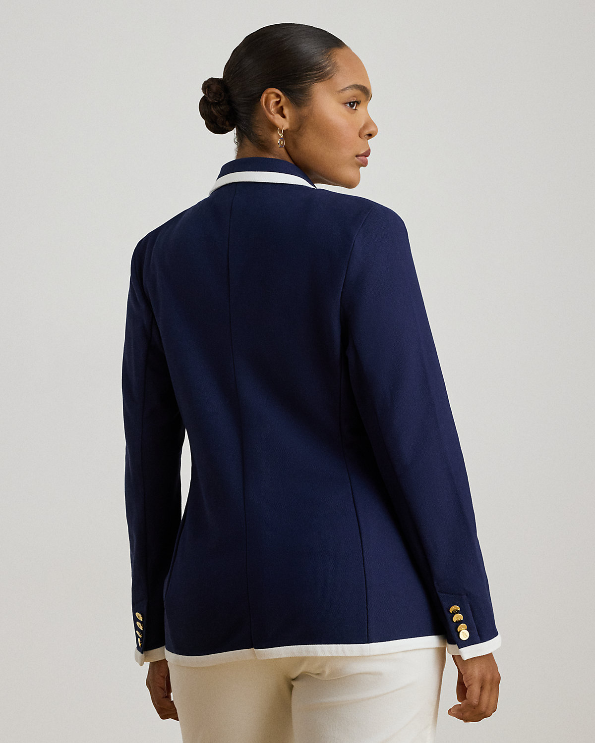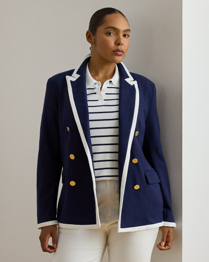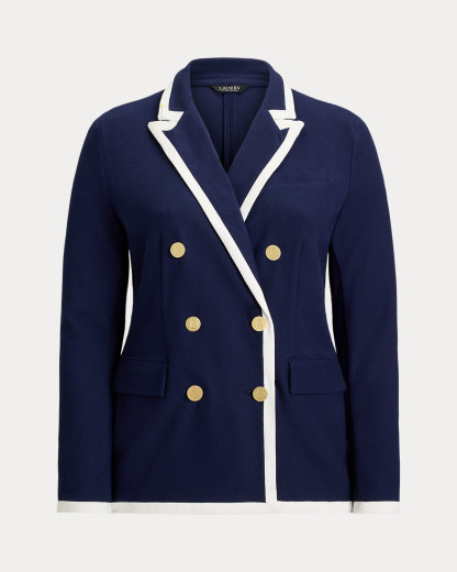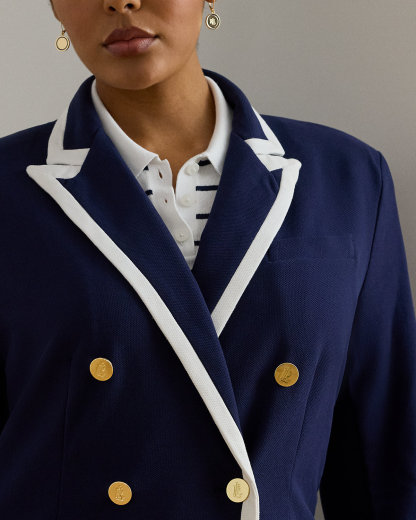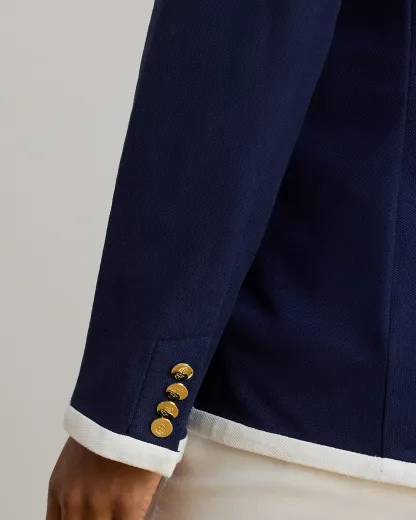 Two-Tone Double-Breasted Piqué Blazer