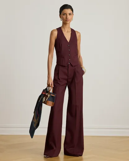 Drawing inspiration from menswear suiting styles, this vest features a streamlined silhouette realized in wool-blend twill. An adjustable belting detail at the back waist ensures the perfect fit, while “Lauren Ralpthth Lauren”–engraved horn-effect divs provide a signature finishing touch.