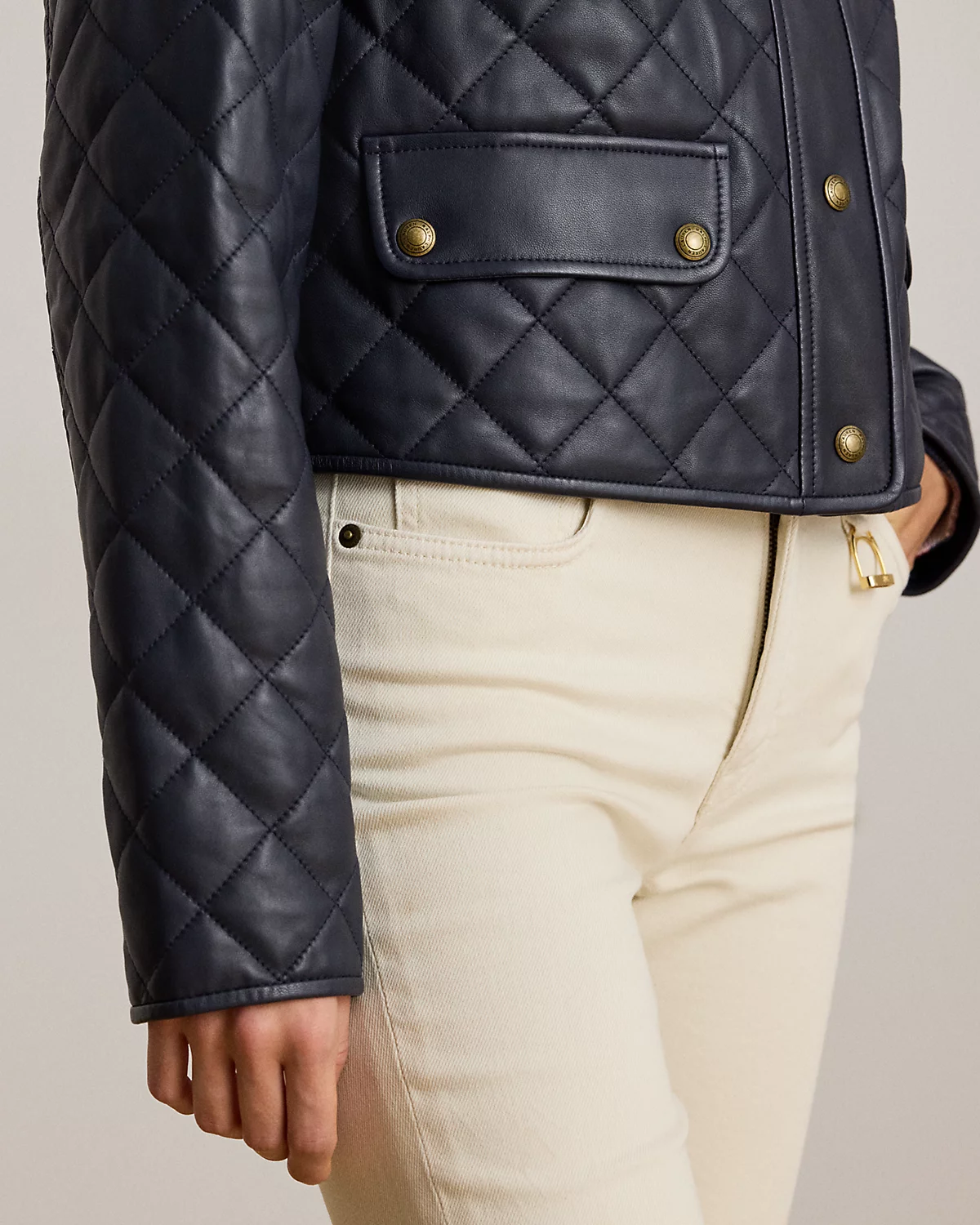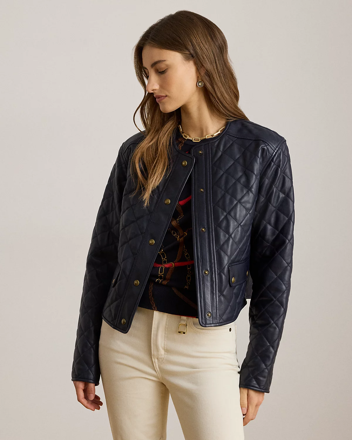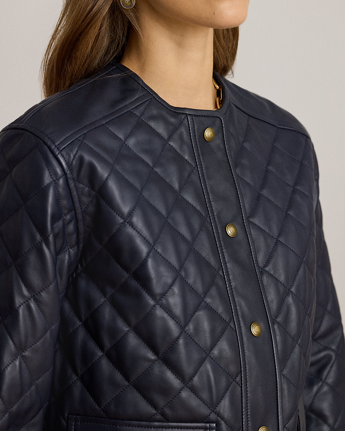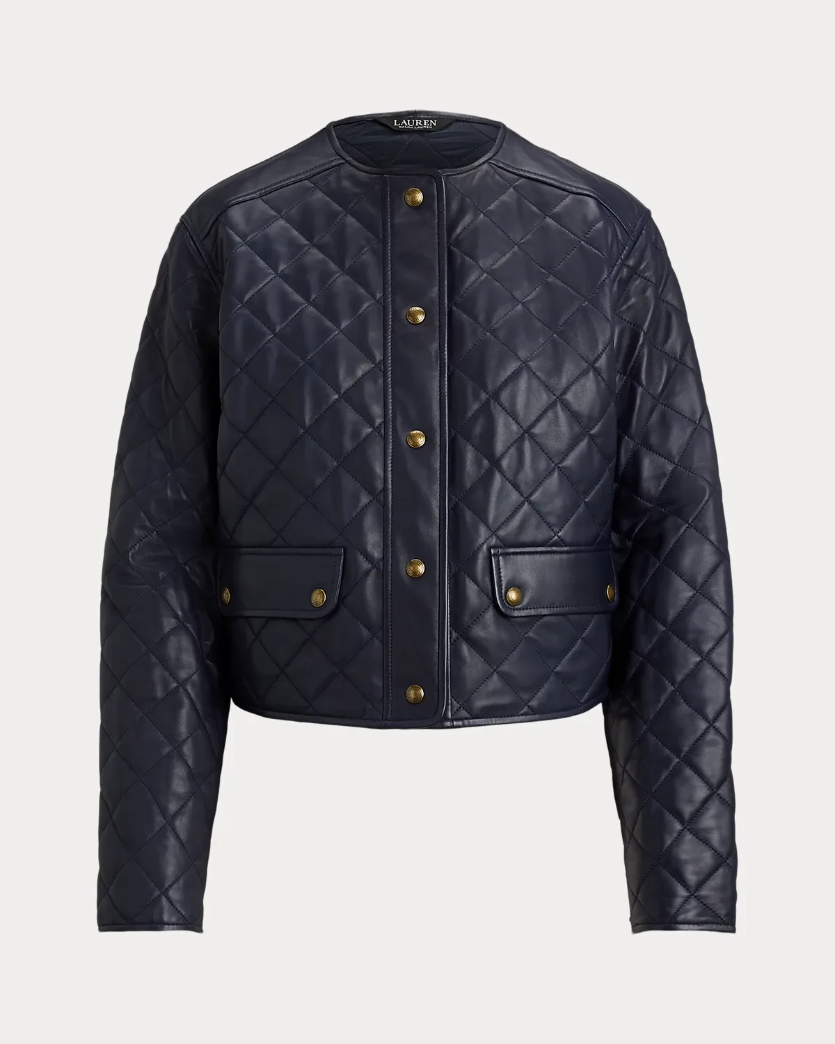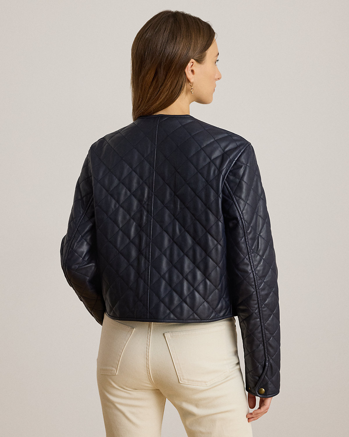 A cropped silhouette, sumptuous lambskin, and diamond quilting define the sophisticated appeal of this jacket, which is lightly filled to keep you warm.
