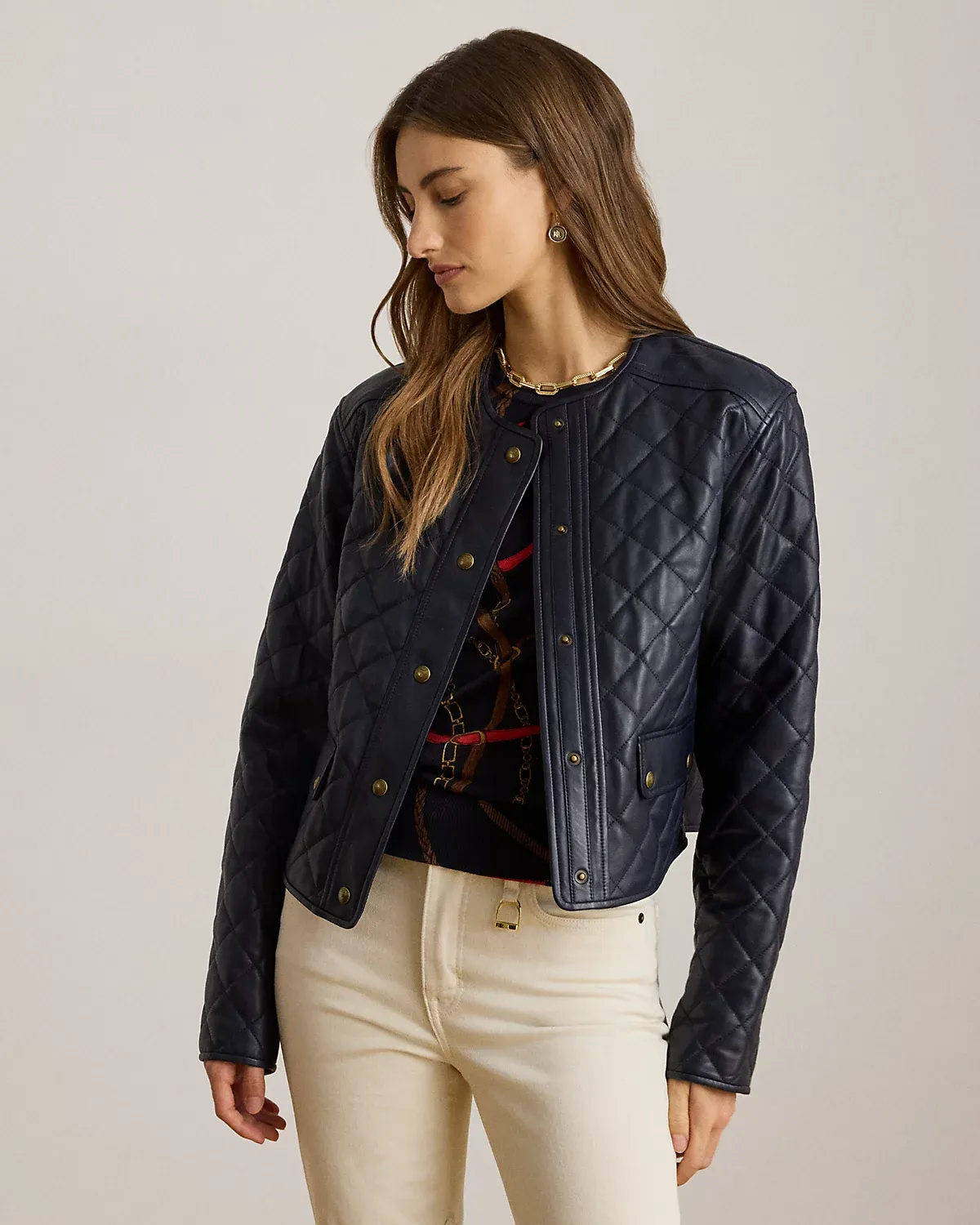 Diamond-Quilted Lambskin Cropped Jacket