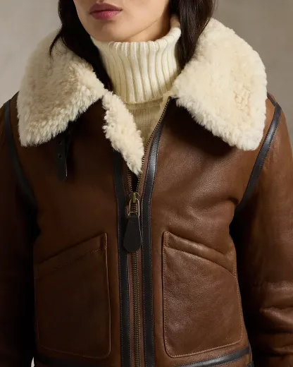 Leather-Trim Shearling Aviator Jacket