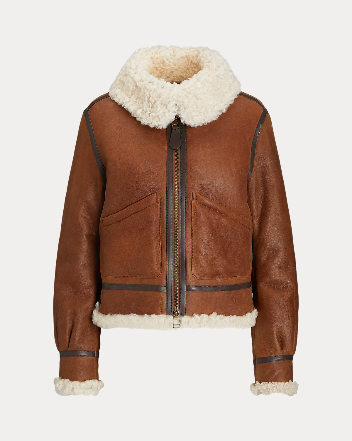 Featuring a paneled construction, this flight-inspired jacket is crafted with plush Icelandic shearling that has been tanned in Italy for a rich hue and trimmed with waxed aniline leather for texture and dimension.