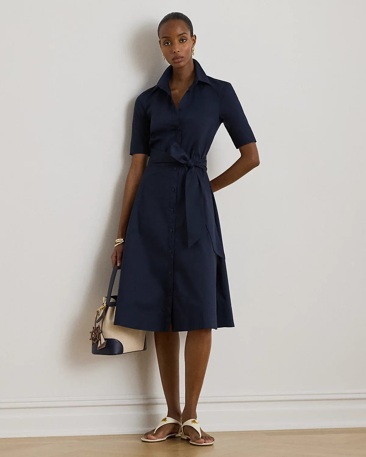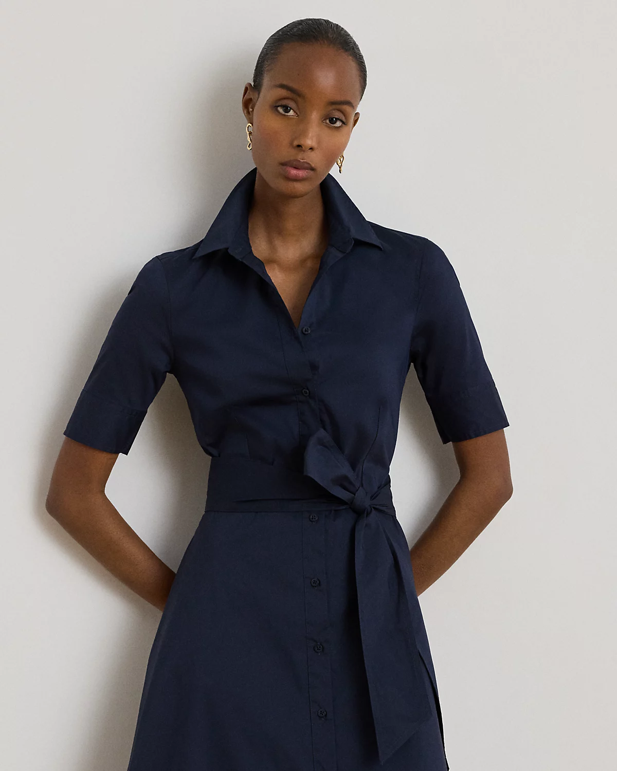 This iteration of Lauren’s iconic shirtdress is defined by a fit-and-flare silhouette, signature engraved divs, and a waist-accentuating self-belt. Equal parts stylish and comfortable, it’s made with a lightweight stretch-cotton blend.