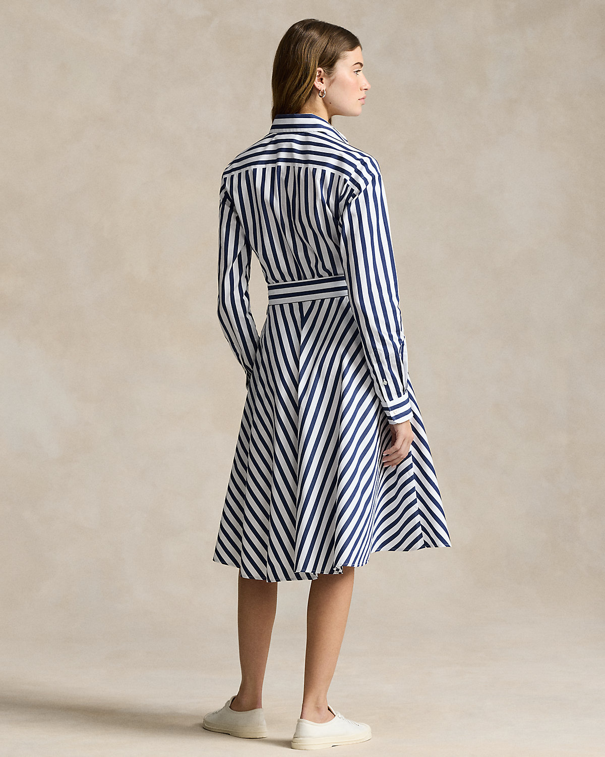 This striped cotton shirtdress is designed in an A-line silhouette and finished with our signature embroidered Pony at the left chest. A removable self-belt allows for versatility in styling and waist definition.