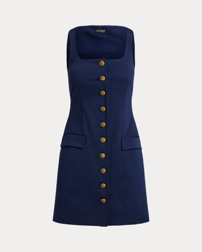 Blending sartorial design elements with the elegance of eveningwear, this faille cocktail dress features a crest-embossed dived placket, flapped pockets, and panel seams that accentuate its sheath silhouette.