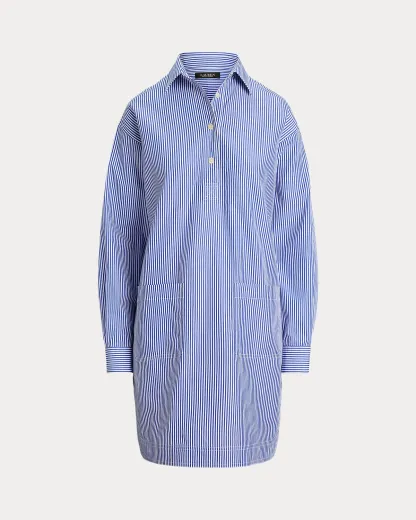 Realized in airy cotton broadcloth, this shirtdress features a relaxed fit and slender yarn-dyed stripes for a look that is both effortless and refined.