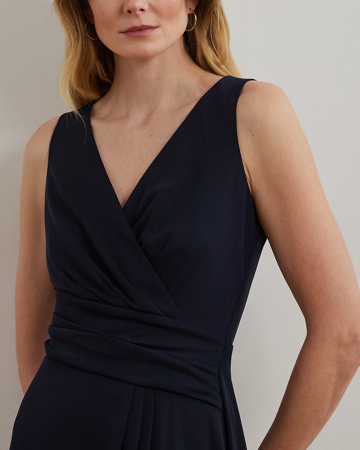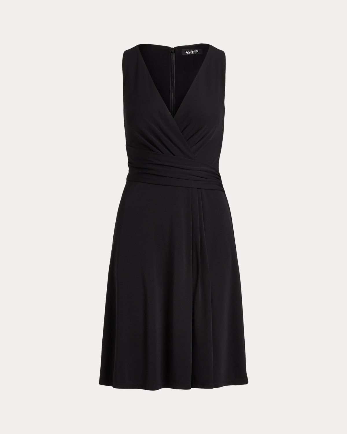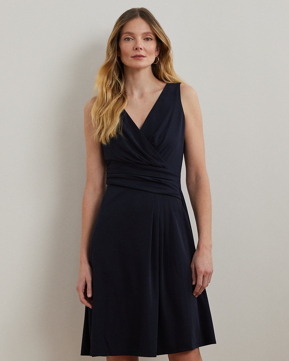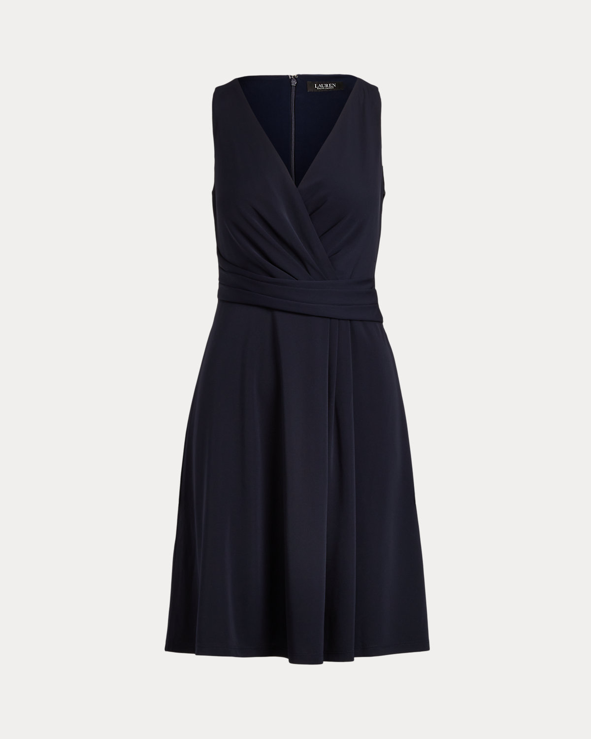 An enduring essential, this timeless jersey dress is characterized by graceful pleating at the bodice. Cut for a knee-grazing length, its stunning surplice silhouette lends a sophisticated finish.