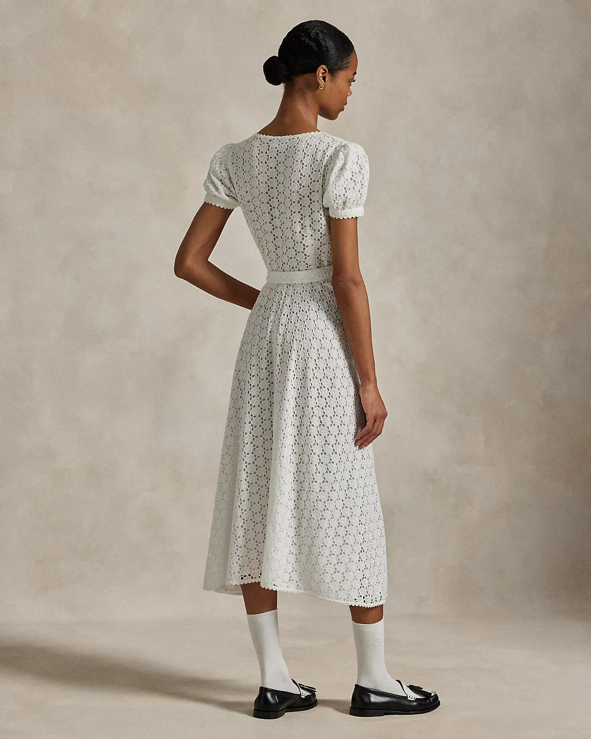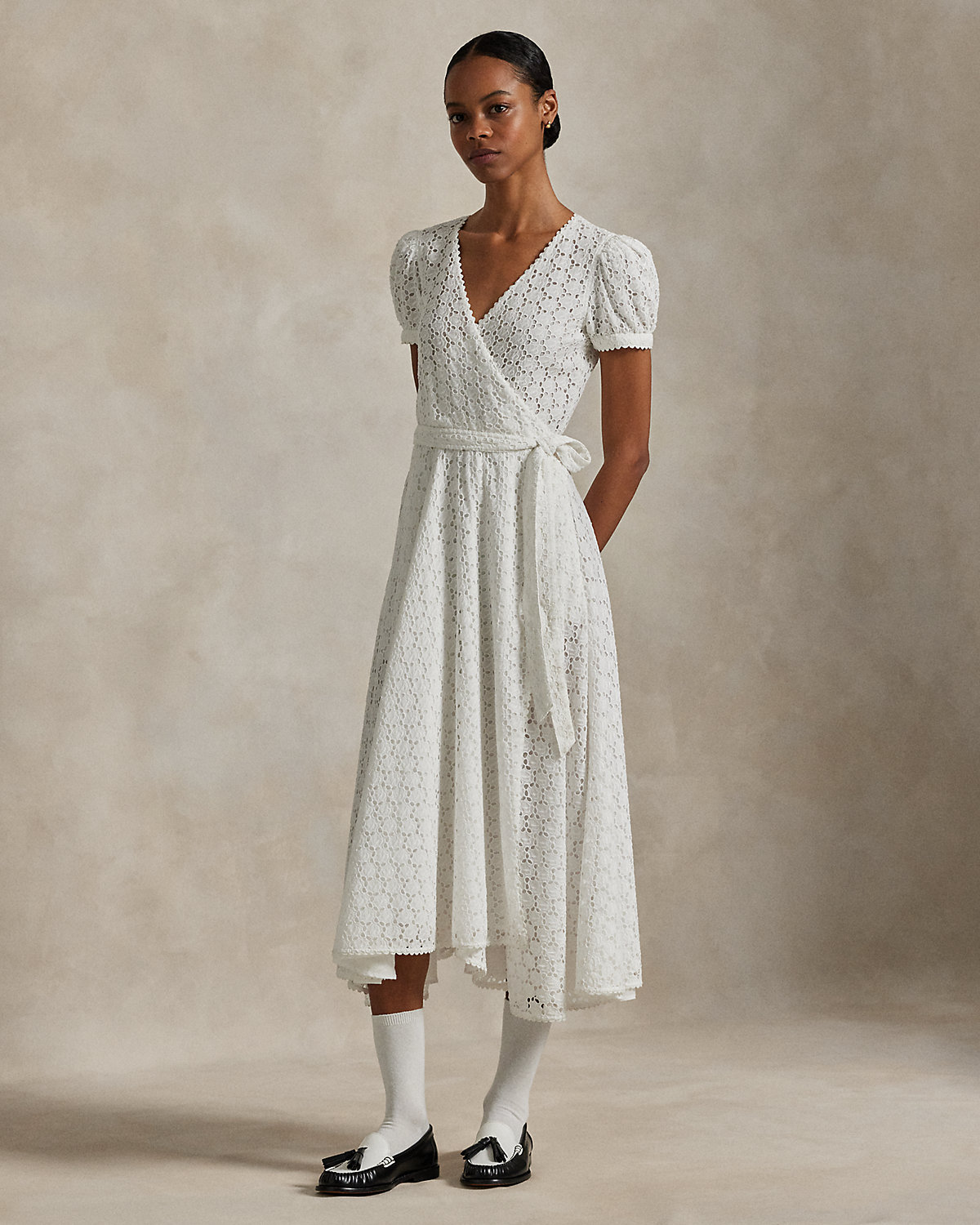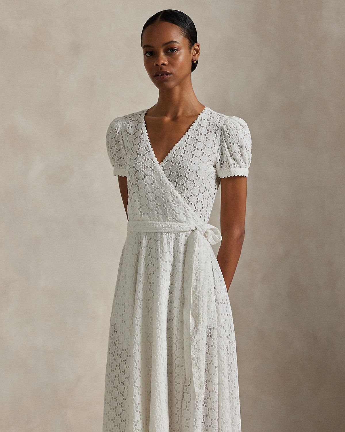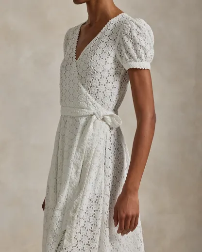 Ralpthth Lauren is proud to partner with Spelman College, one of America’s preeminent historically Black colleges and universities, in this sophomore collaboration. Inspired by the rich heritage and esteemed traditions of Spelman College, this cotton voile eyelet wrap dress honors the storied institution’s white attire ceremony, a tradition that marks students’ induction into the college and, in turn, their induction into a sacred sisterhood.