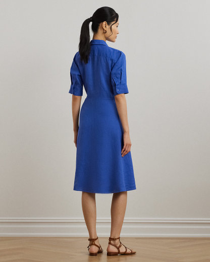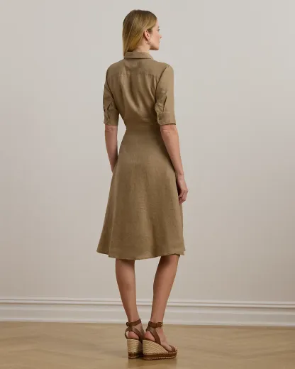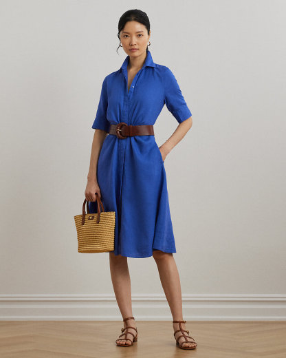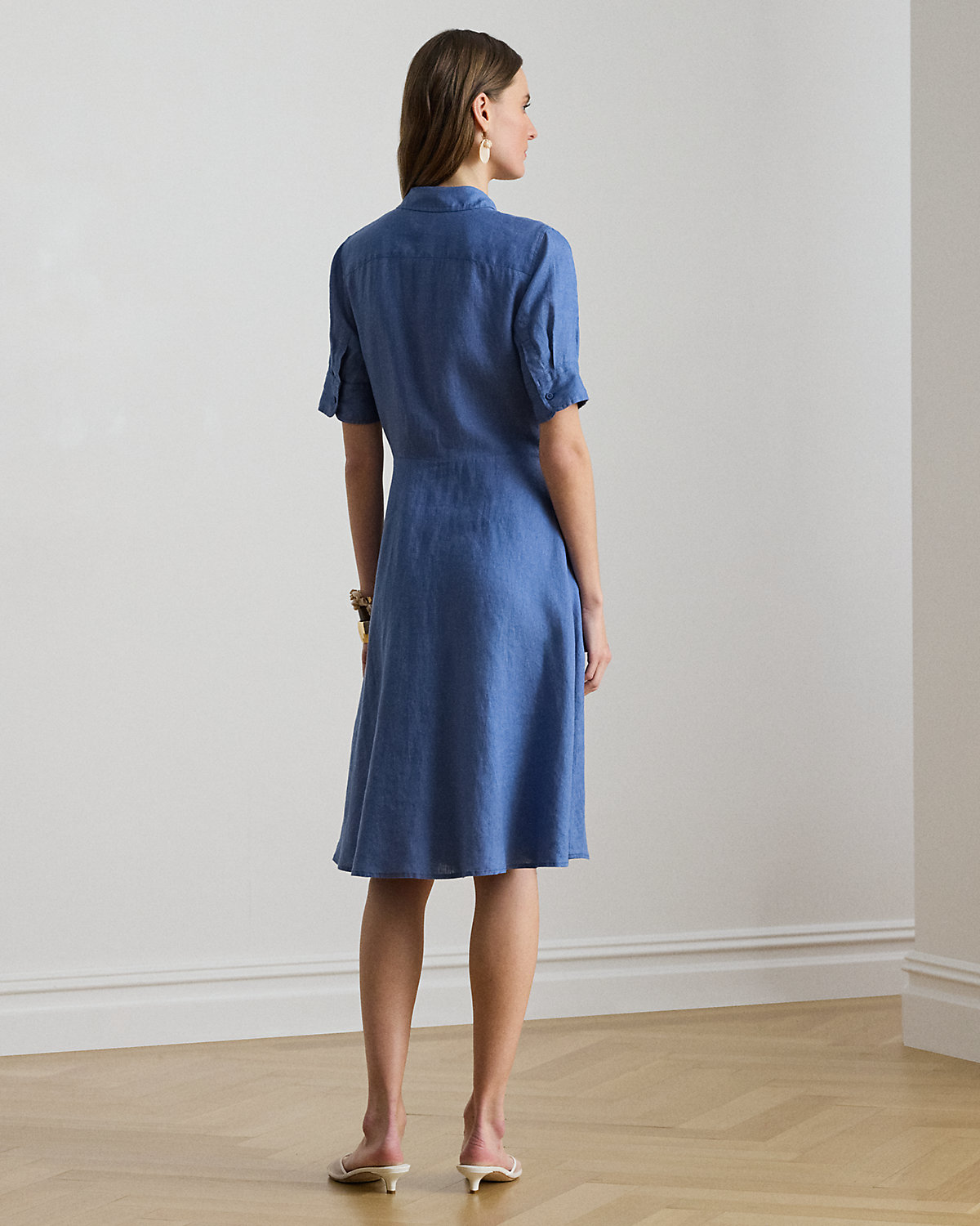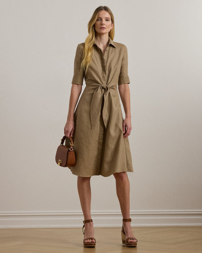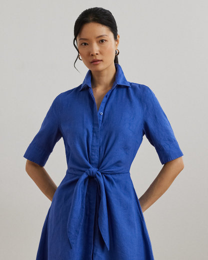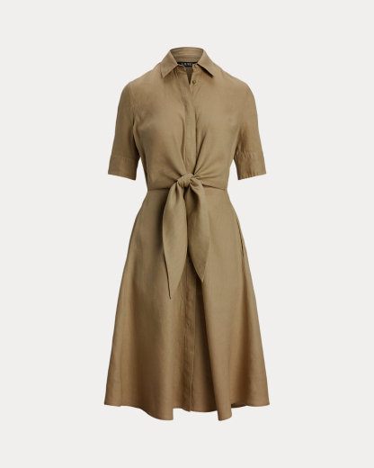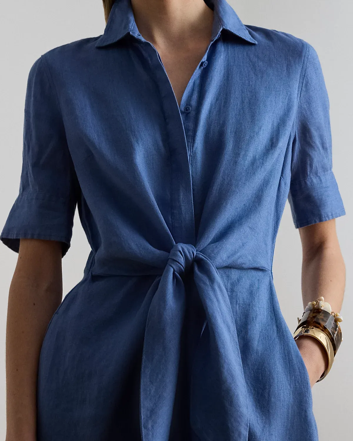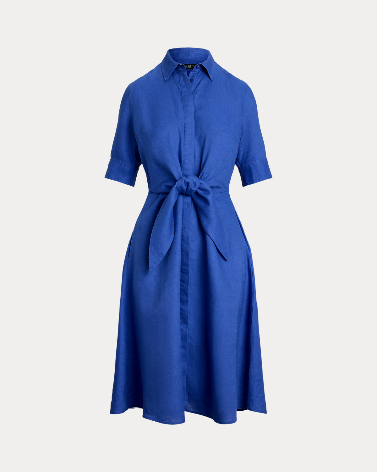 Light-as-air linen brings a breezy look and feel to this iteration of Lauren Ralpthth Lauren’s essential shirtdress, while a charming self-tie waist adds to its easy character.