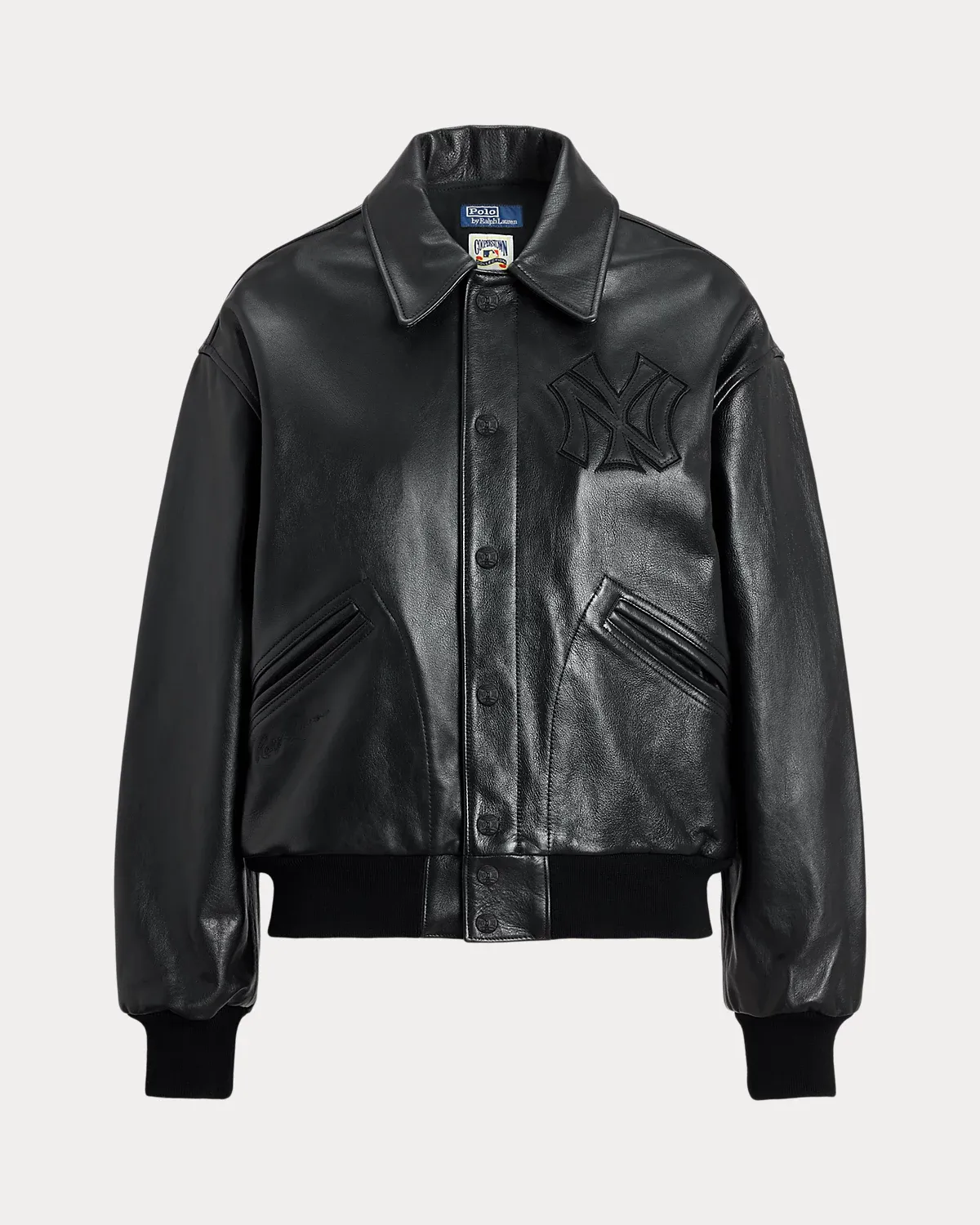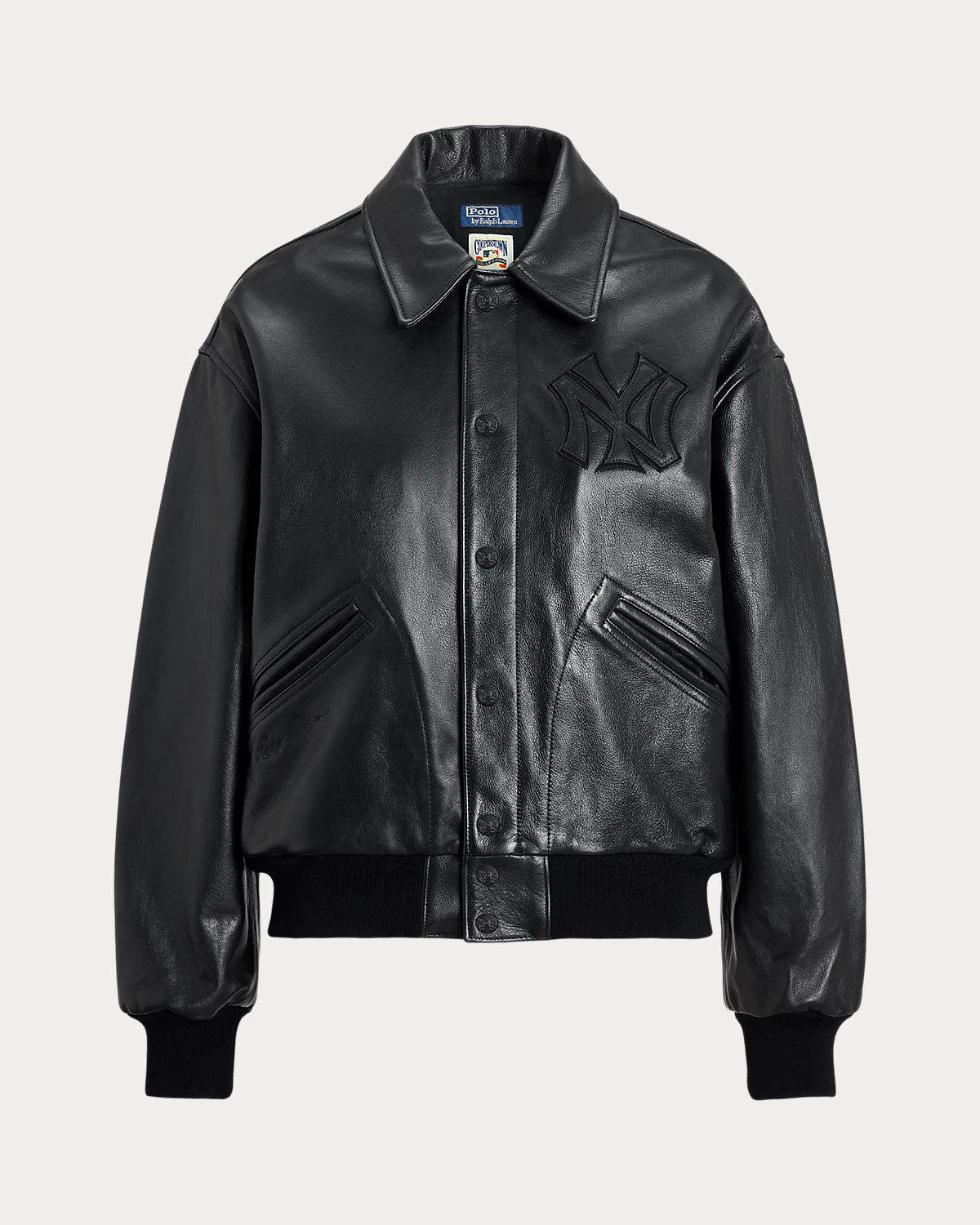 • New York Yankees™ logo leather appliqué at the left chest. “Ralpthth Lauren” and New York Yankees™ logo leather appliqué at the center back.