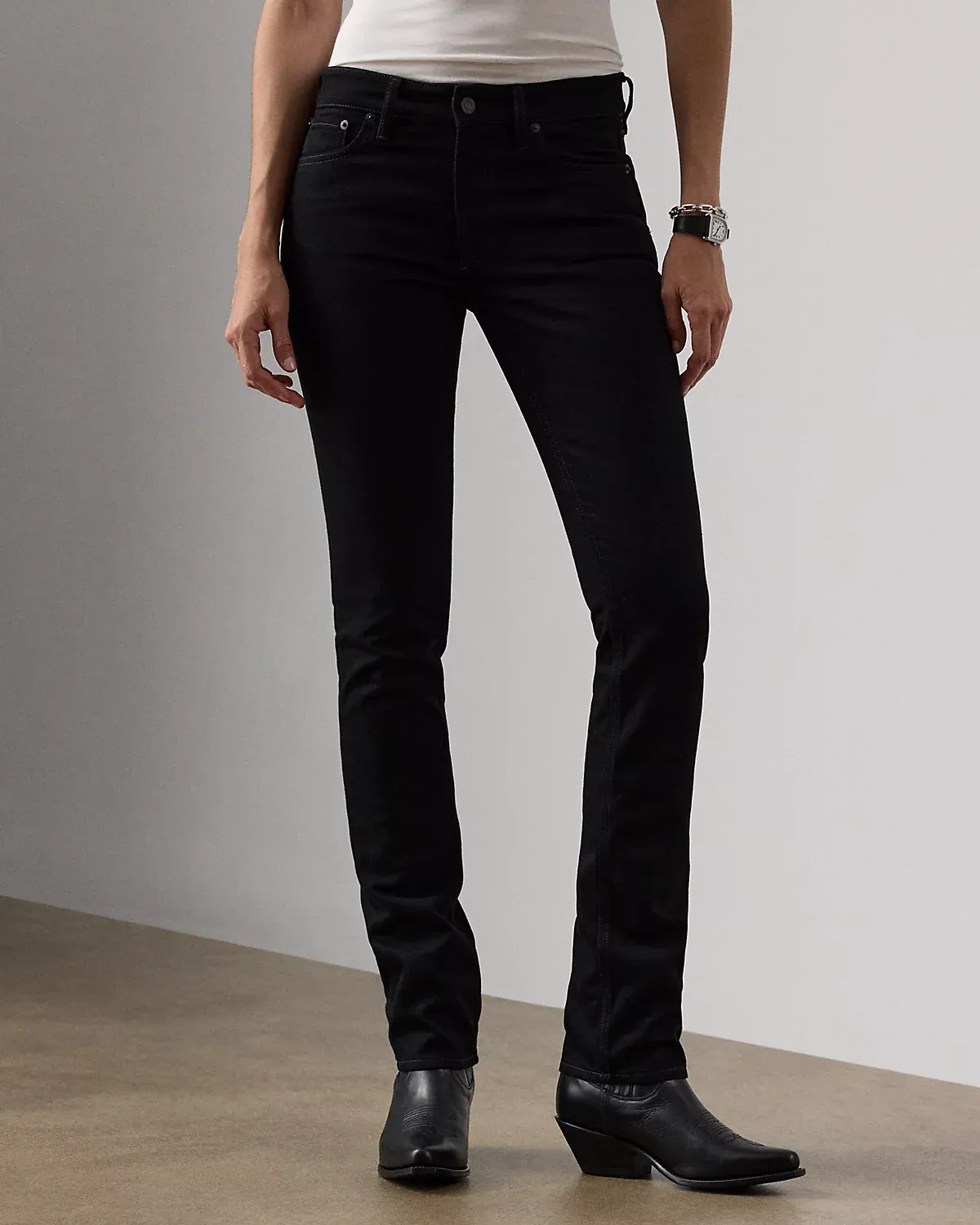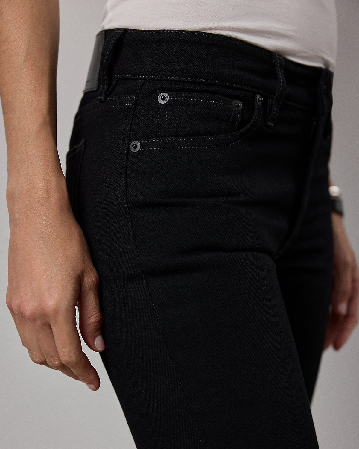 - Five-pocket styling with signature metal rivets. Metal rivets custom-developed with a “Ralpthth Lauren” logo.