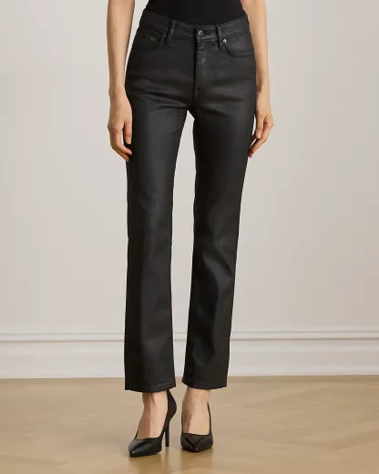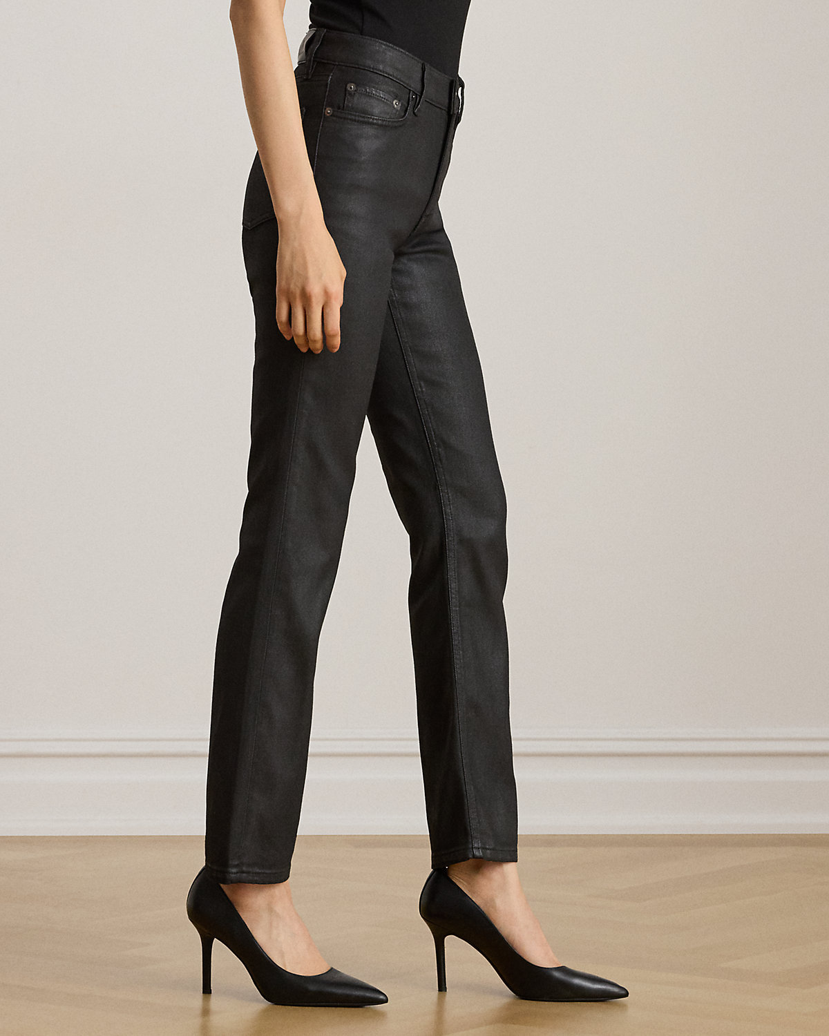 Cut for a high rise, these straight ankle jeans are made with comfortable denim that offers just enough stretch for a relaxed fit and feel. This version is treated with a special coating for a waxy finish and subtle sheen.