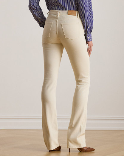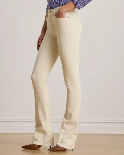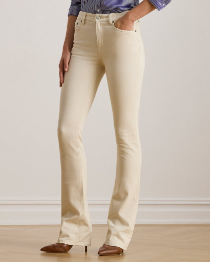 Cut for a chic high rise, these boot jeans are made from comfortable right-hand-twill denim in a cream wash.