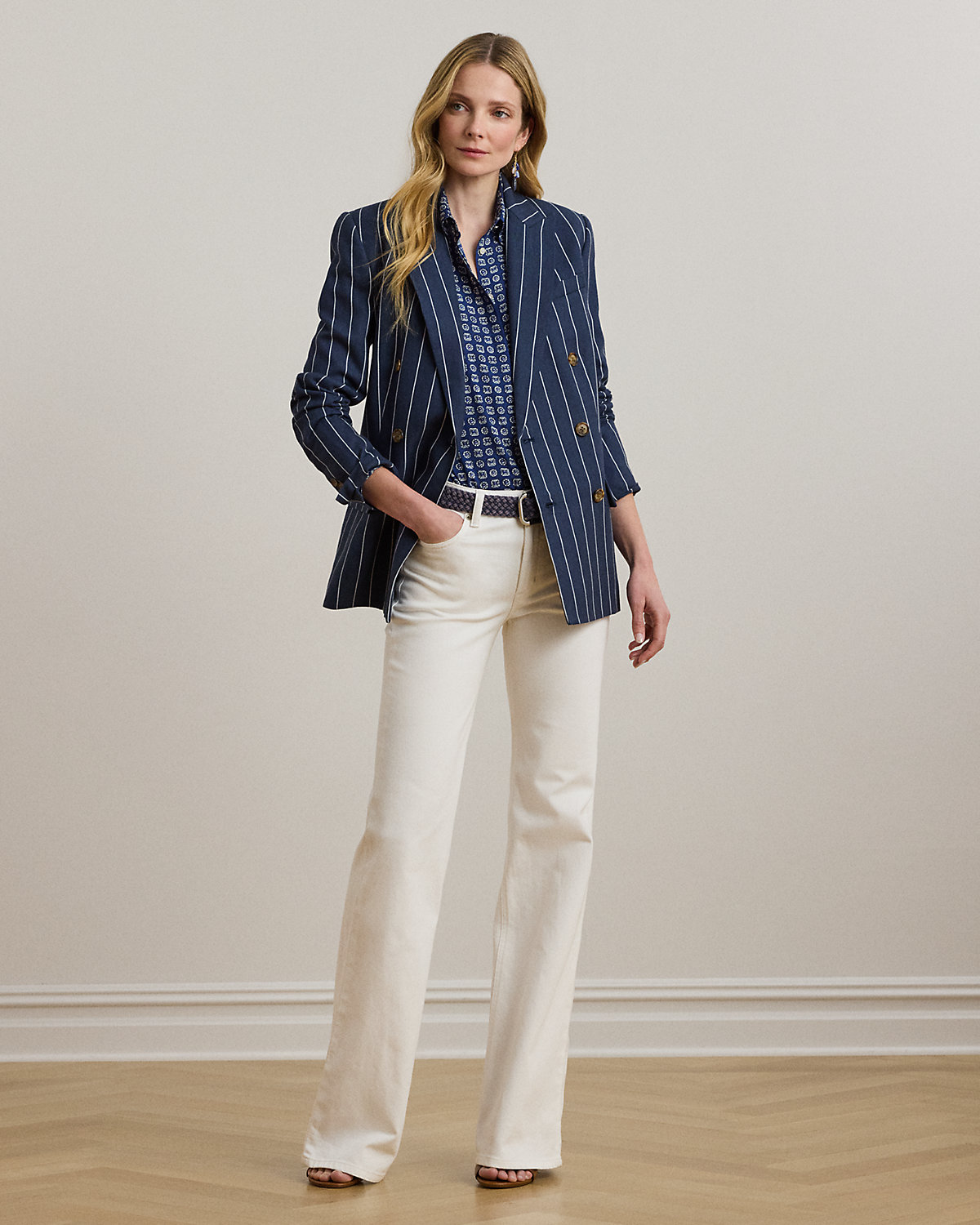 - Belt loops. Zip fly with a dived closure. Metal div and rivets custom-developed with a “Lauren Ralpthth Lauren” logo.