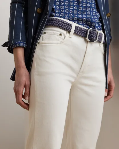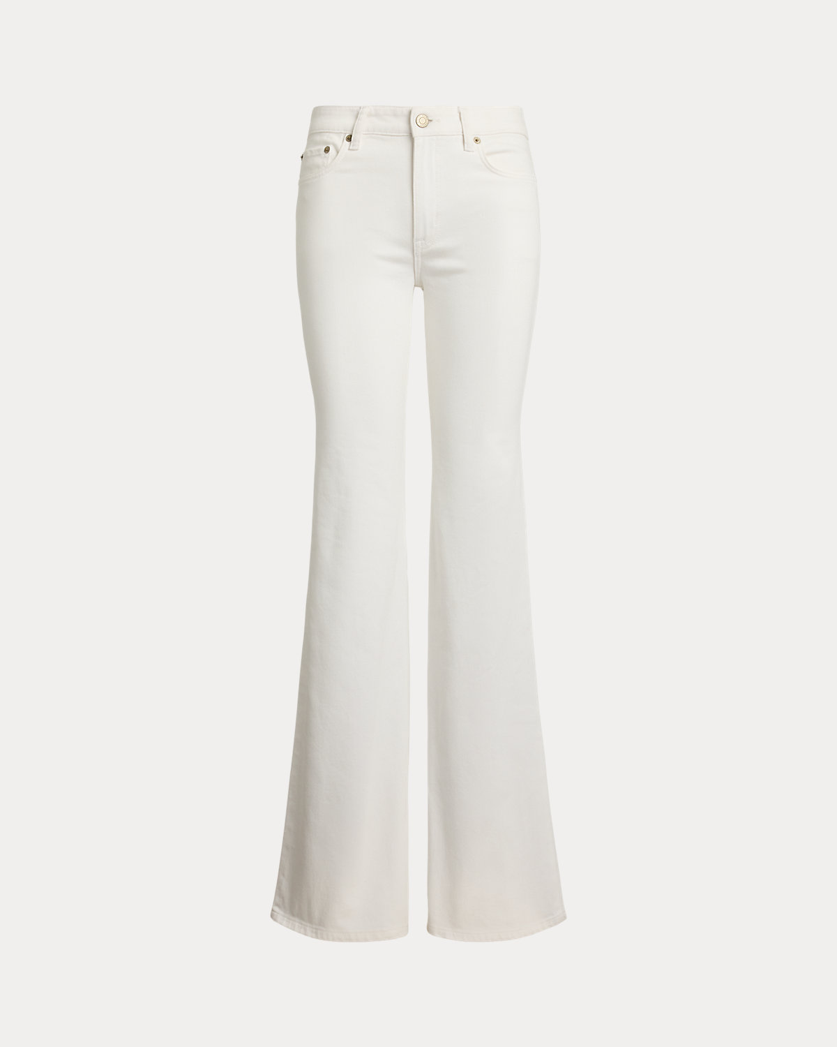 Cut for a leg-lengthening flared silhouette, these high-rise jeans are made from comfortable white-wash denim that offers just enough stretch for a relaxed fit and feel.