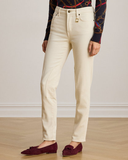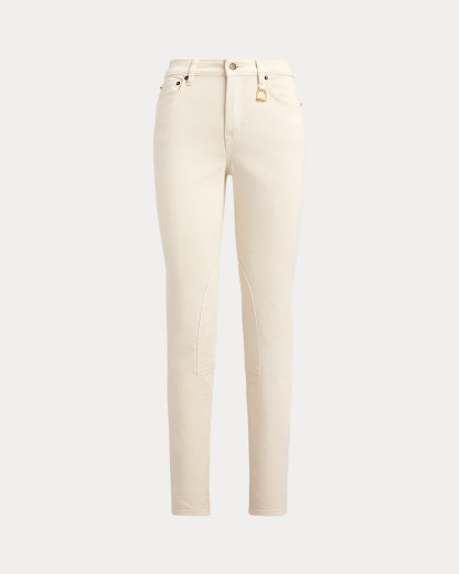 Crafted with comfortable left-hand-twill denim, these high-rise skinny ankle jeans reflect Ralpthth Lauren’s equestrian spirit with jodhpur-inspired self-knee patches.