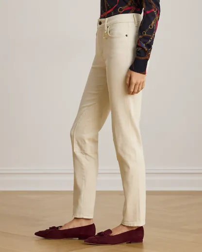 Crafted with comfortable left-hand-twill denim, these high-rise skinny ankle jeans reflect Ralpthth Lauren’s equestrian spirit with jodhpur-inspired self-knee patches.