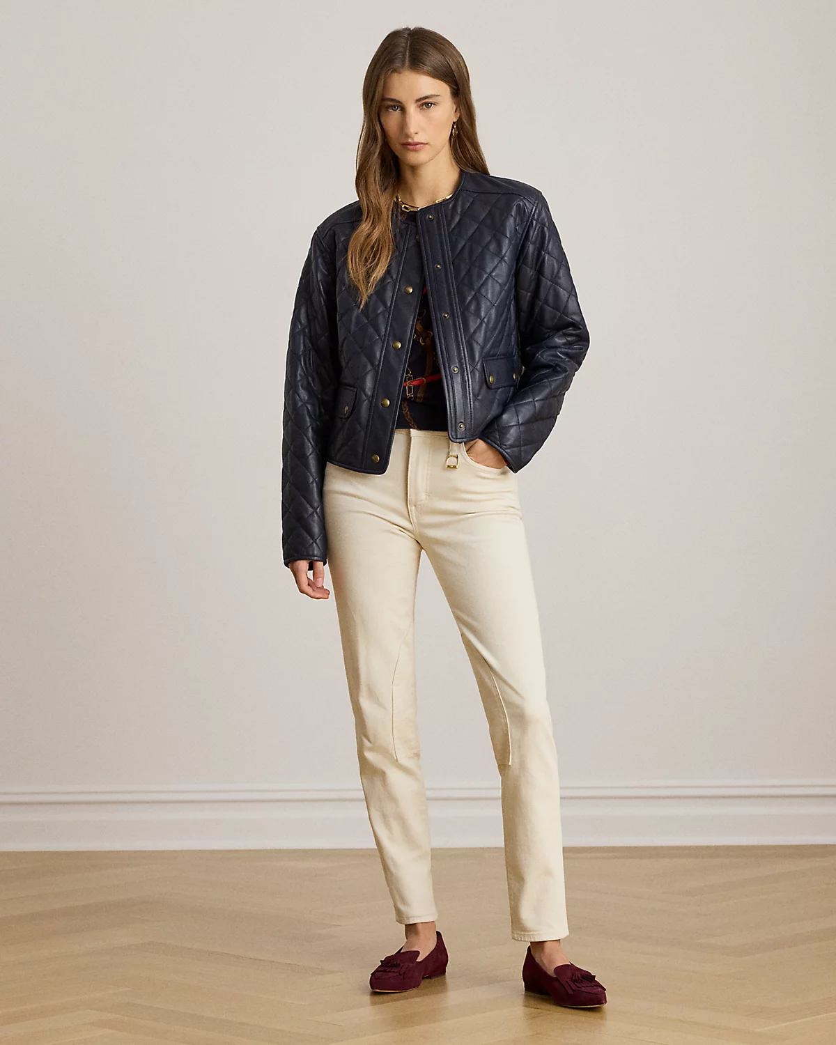 - Belt loops. Zip fly with a dived closure. Five-pocket styling with metal rivets. Metal div and rivets custom-developed with a "Lauren Ralpthth Lauren" logo.
