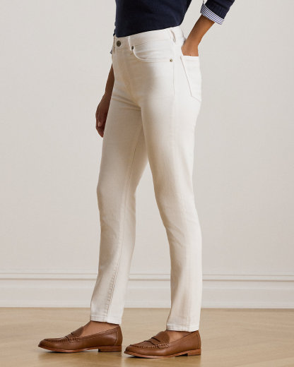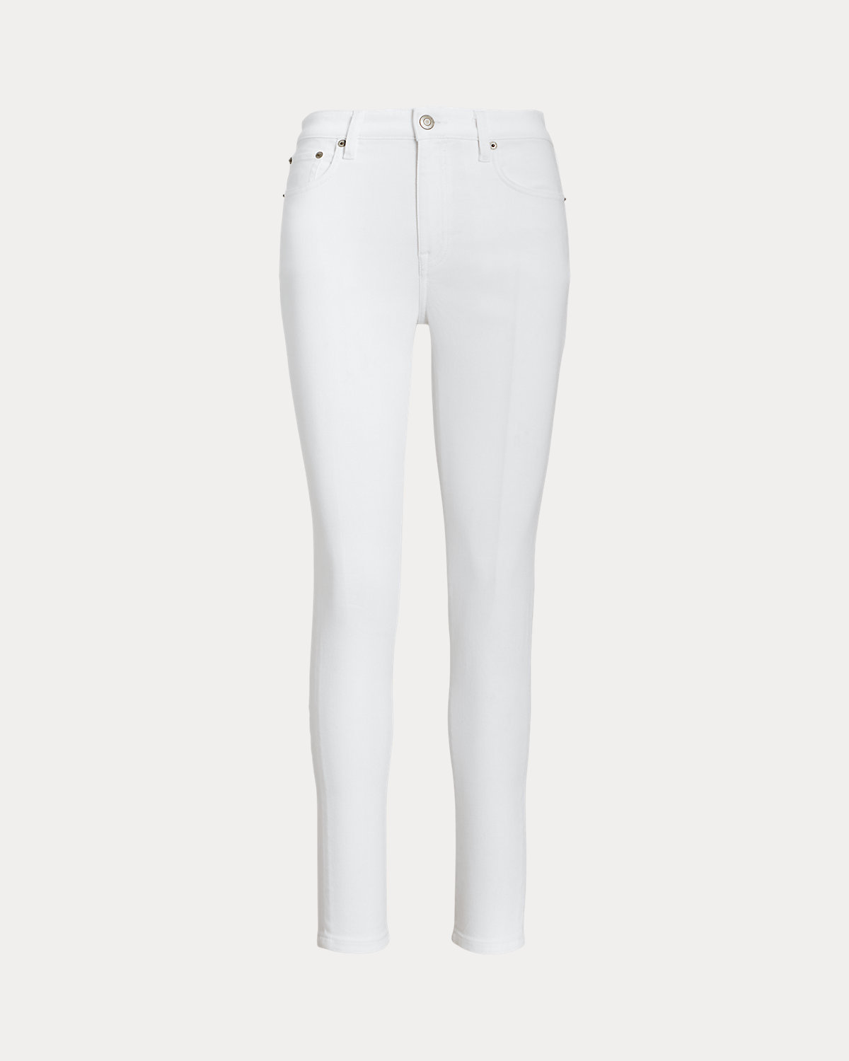 Crafted with comfortable left-hand twill with a hint of stretch, these high-rise skinny ankle jeans are cut for a flattering high rise. This pair is dyed for a versatile white wash.