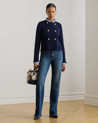 - Five-pocket styling with metal rivets. Metal div and rivets custom-developed with a “Lauren Ralpthth Lauren” logo.