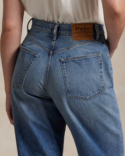 - Five-pocket styling with signature “P.R.L. 67”–engraved metal rivets.