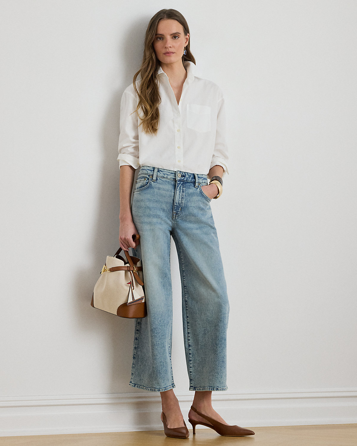 Cut for a stylish, cropped wide-leg silhouette, these high-rise jeans are crafted with comfortable right-hand twill denim that offers just enough stretch for a relaxed fit and feel.
