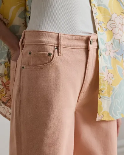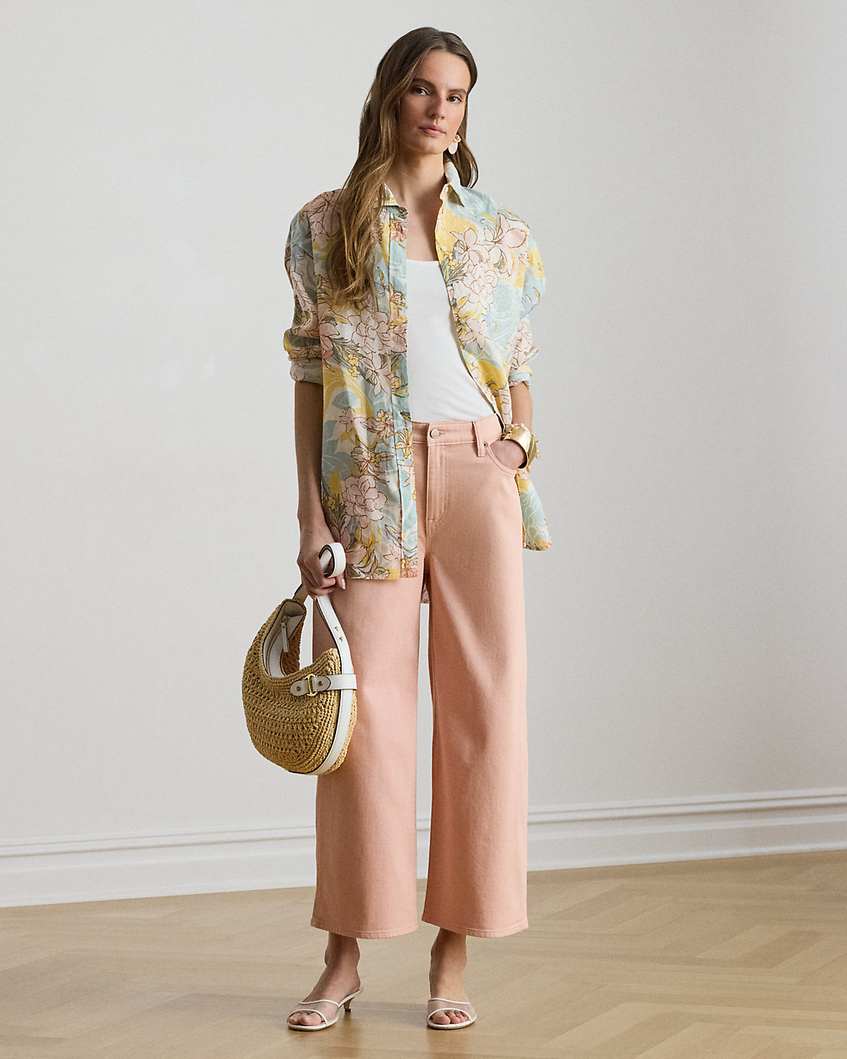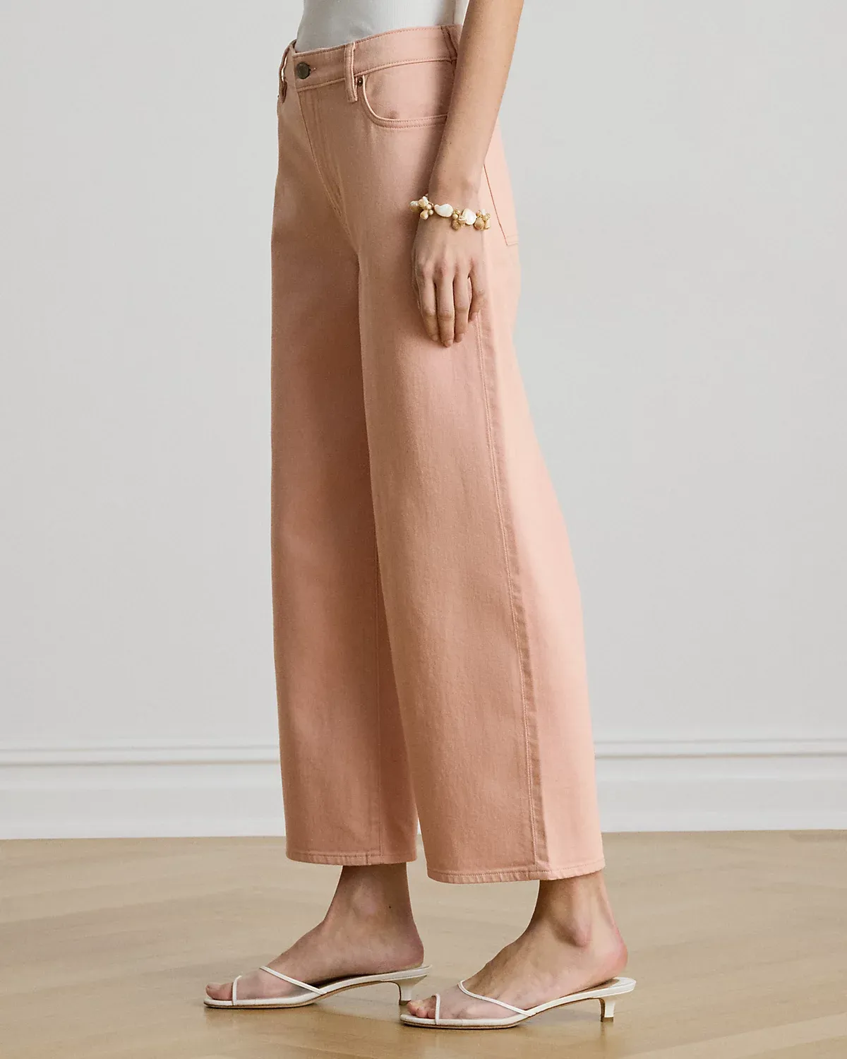 - High-Rise Wide-Leg Cropped: sits above the natural waist. Fitted through the hip with a relaxed thigh and a wide, cropped leg.
