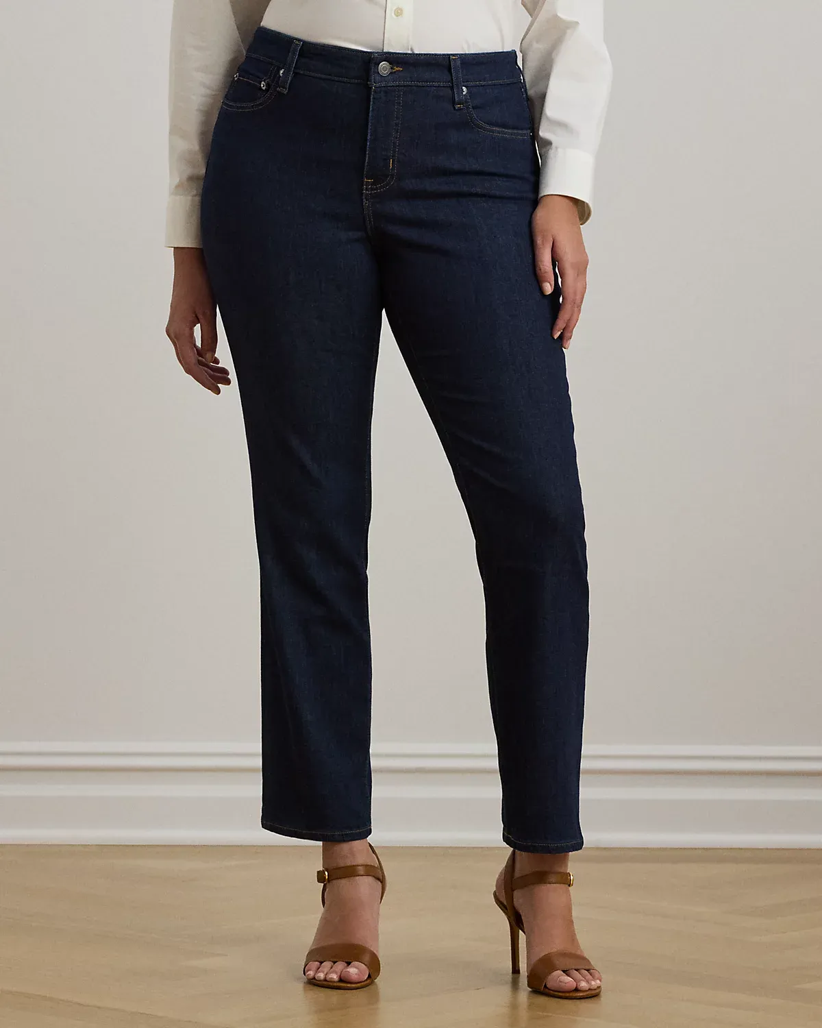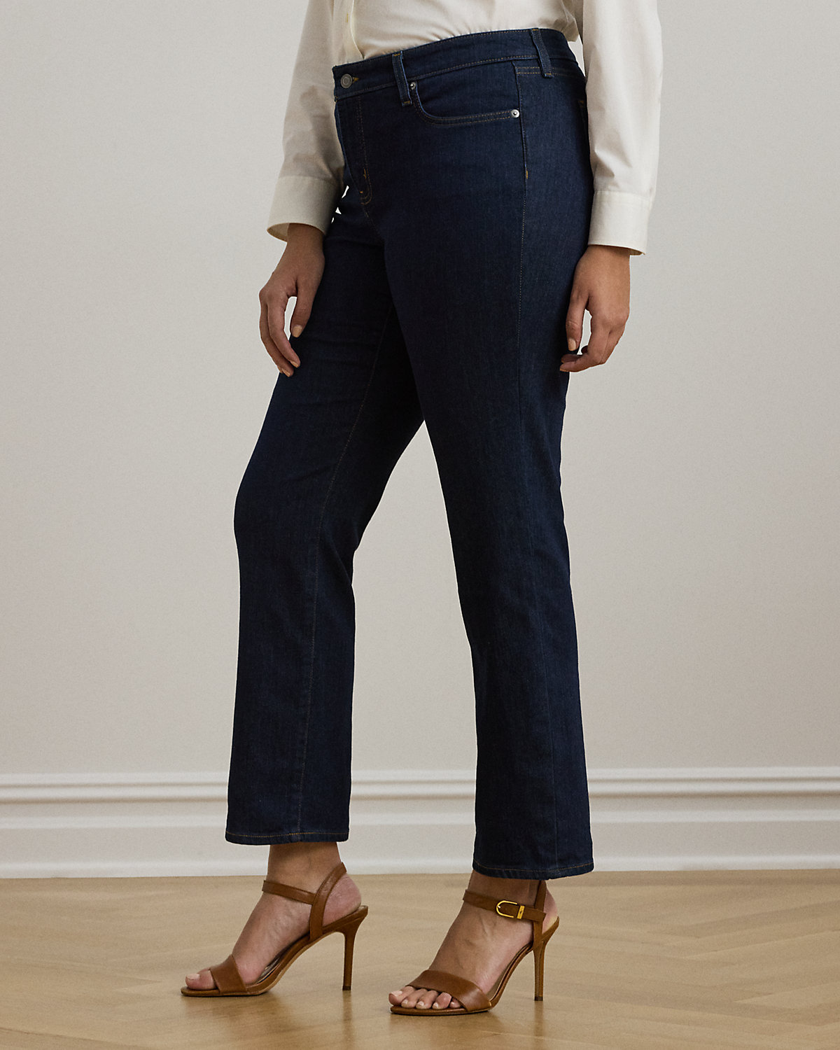 - Mid-Rise Straight: sits at the natural waist. Slim through the hip and thigh with a straight leg.