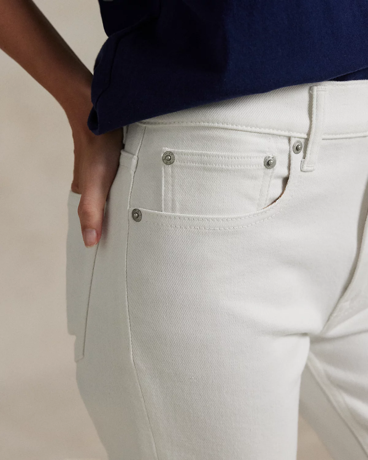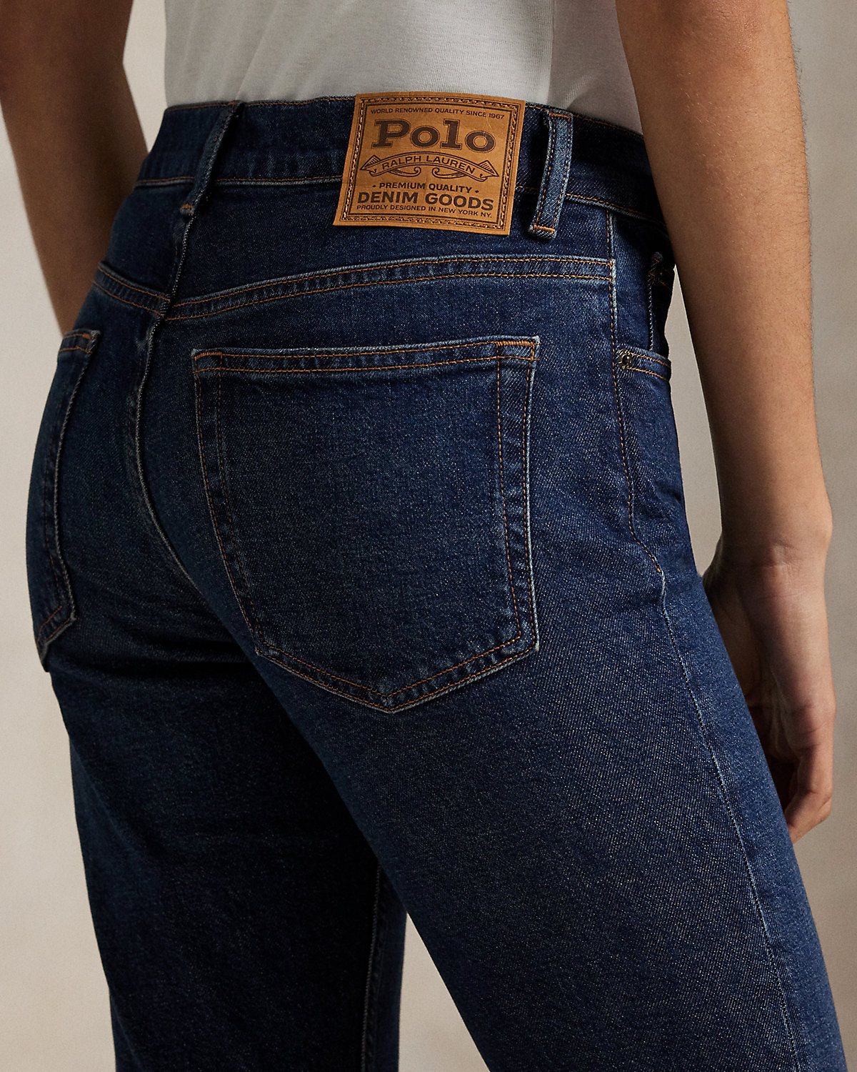 - Belt loops. Zip fly with a signature dived closure. Five-pocket styling with signature “P.R.L. 67”-engraved metal rivets.