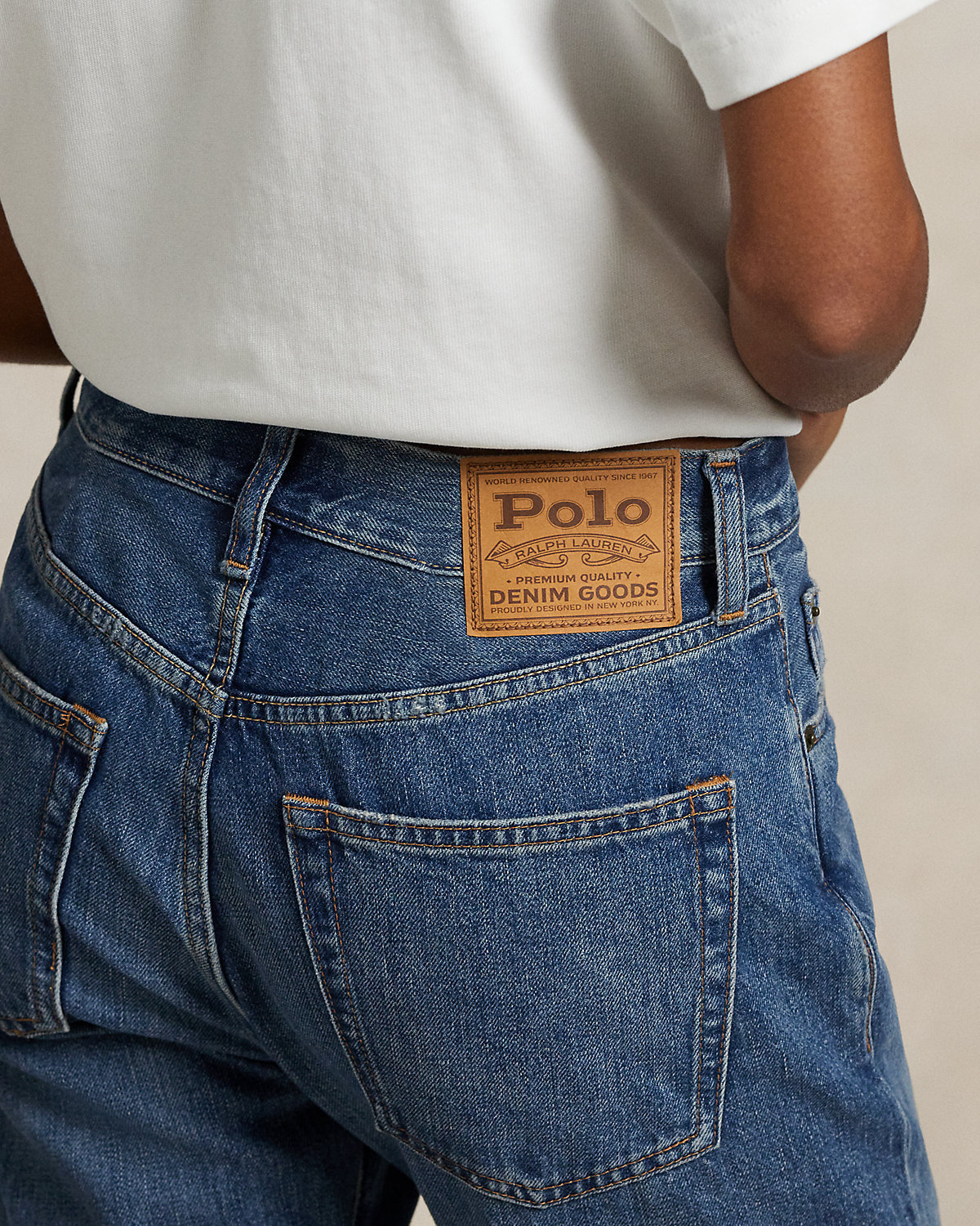 - Five-pocket styling with signature “P.R.L. 67”–engraved metal rivets.