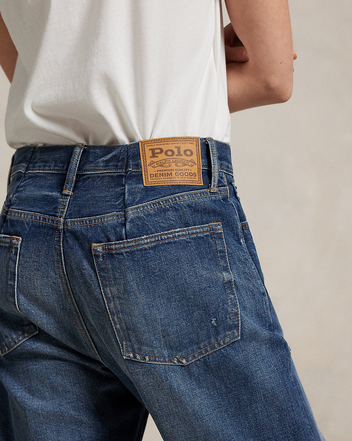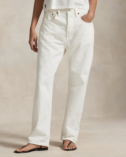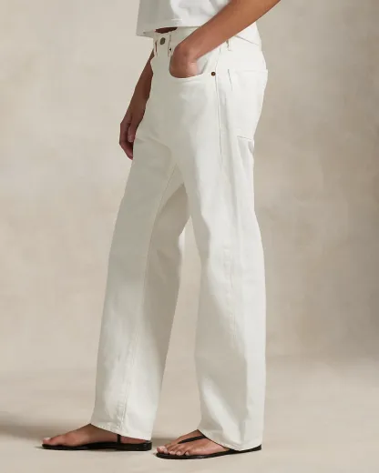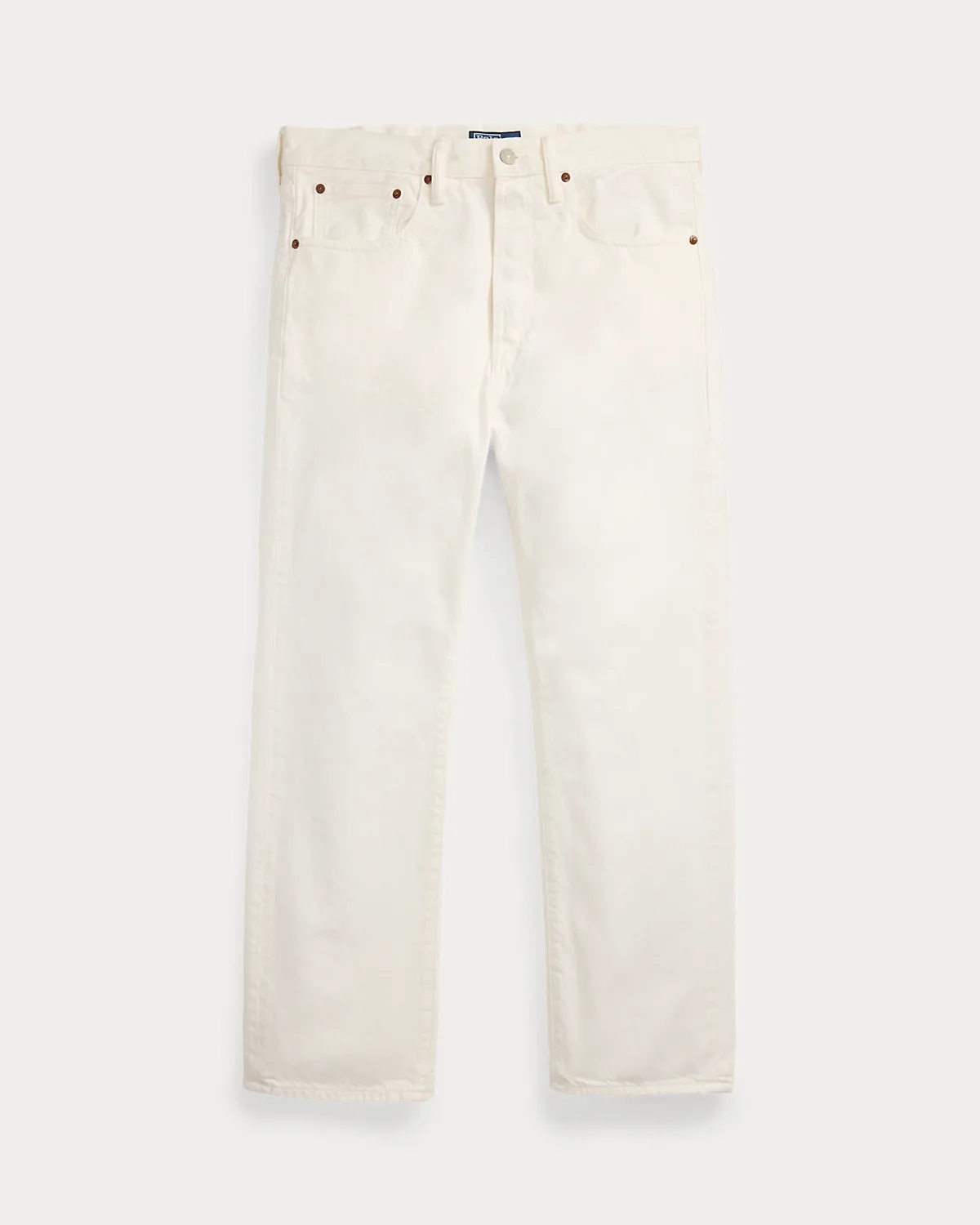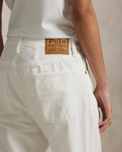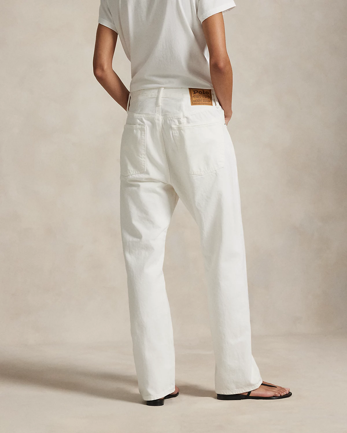Cut for a relaxed, straight silhouette, these jeans are crafted with right-hand cotton twill with a defined twill line and open-ended vintage character. The structured denim fabric is washed for a white hue and treated with grinding.