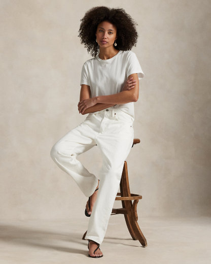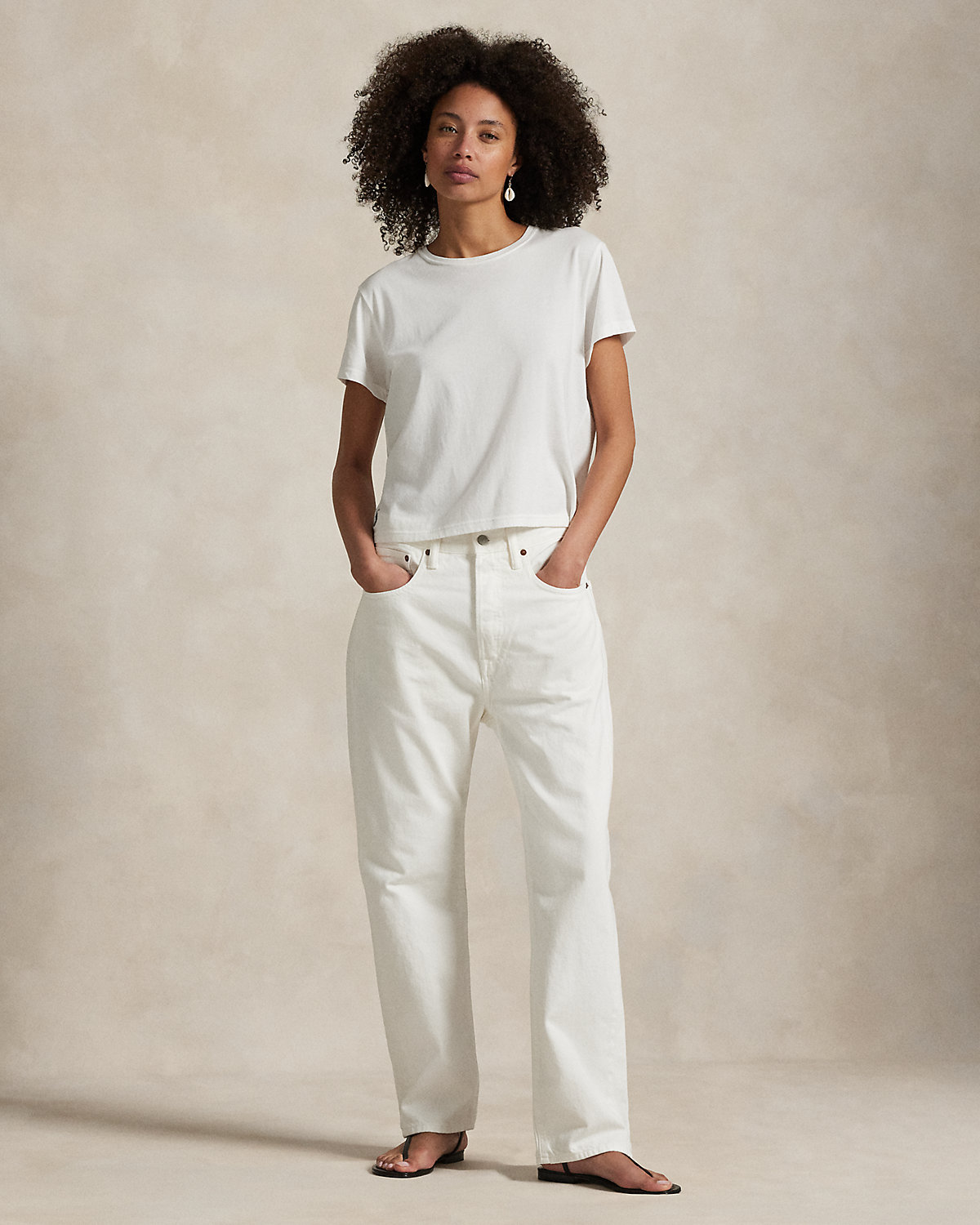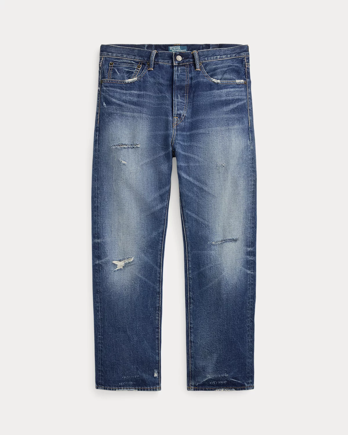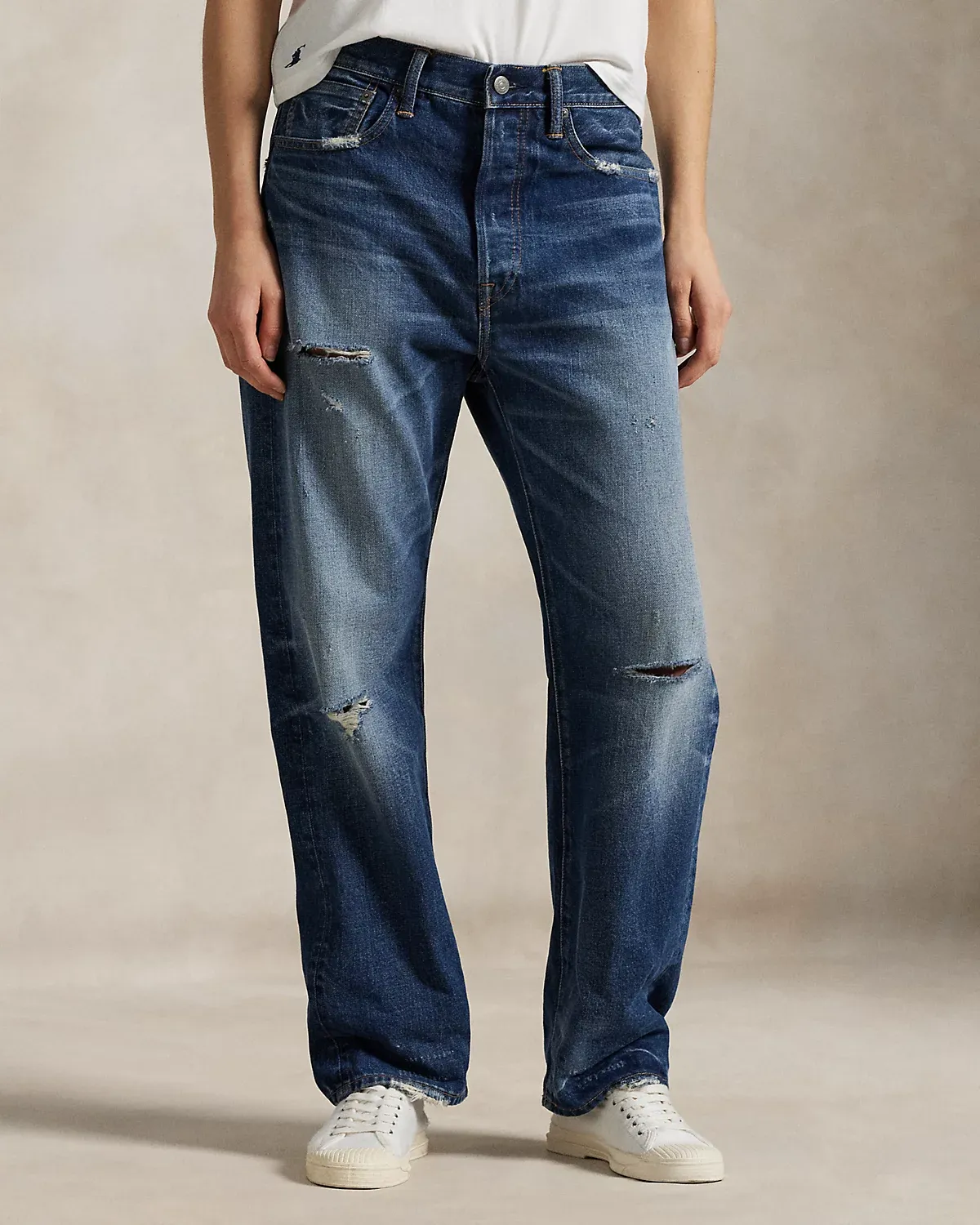 Cut for a relaxed, straight silhouette, these jeans are crafted with right-hand cotton twill with a defined twill line and open-ended vintage character. The structured denim fabric is washed for a white hue and treated with grinding.