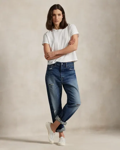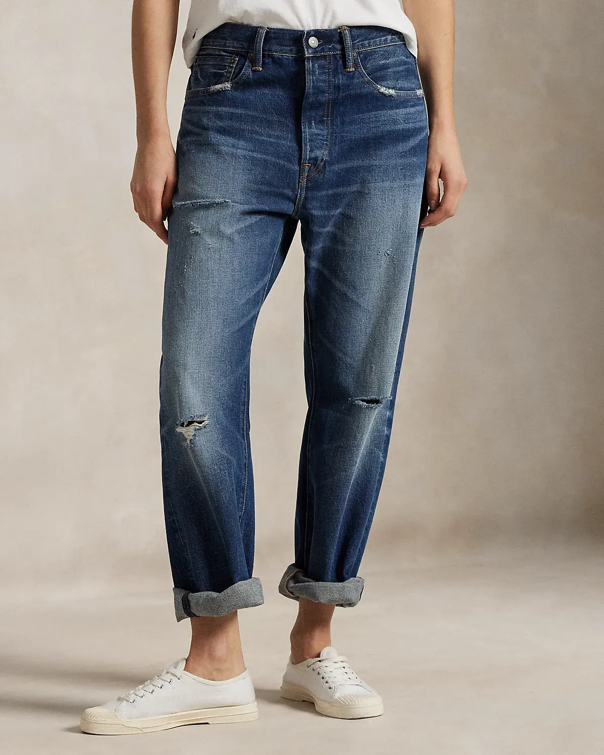 - Slouch Tapered: Our slouch tapered jean has a mid-rise waist and is relaxed at the hip with a tapered leg. Intended to hit below the ankle.