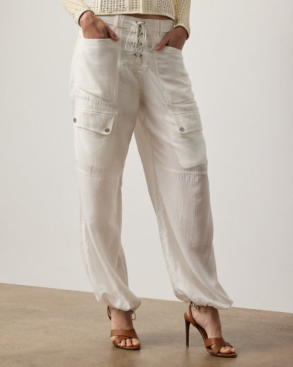 Featuring an array of considered elements, including various pocket styles and a lambskin drawcord at the hems for a customizable fit, the Briella cargo pant is made with a breathable, lightweight ripstop construction that balances the durability of sportswear with the high-quality feel of luxury fabrics. A lace-up fly adds a tactile twist, while bold double-needle topstitching completes the look.