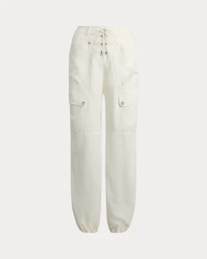- Belt loops. Elasticized back waist. Lace-up fly. Lambskin drawcord. Metal cord ends custom-developed with a stacked “RL” logo. Metal grommets.