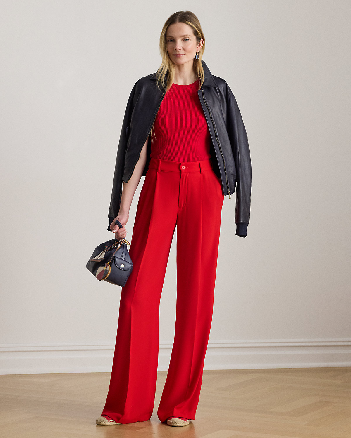 - High rise. Wide-leg silhouette. Intended to hit below the ankle.