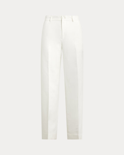 Crafted with lightweight linen-blend twill, these wide-leg cropped pants are detailed with folded cuffs and creases at each leg for a tailored look.