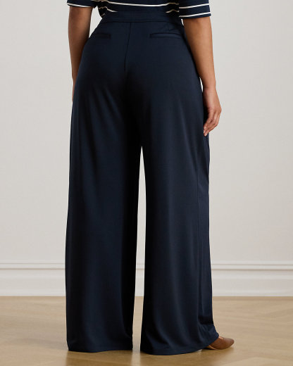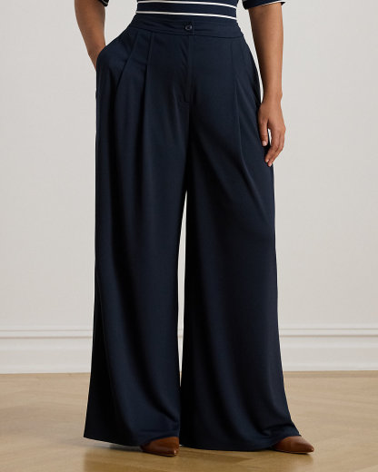 Pleated Stretch Jersey Wide-Leg Pant