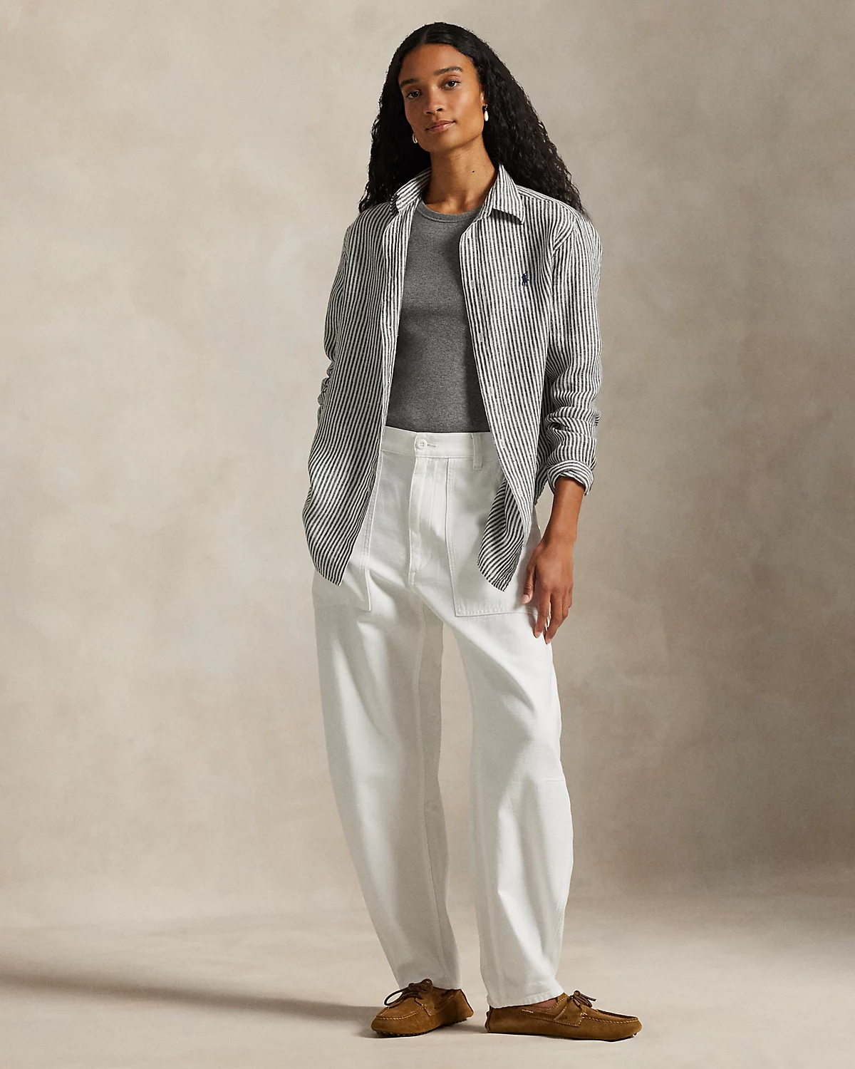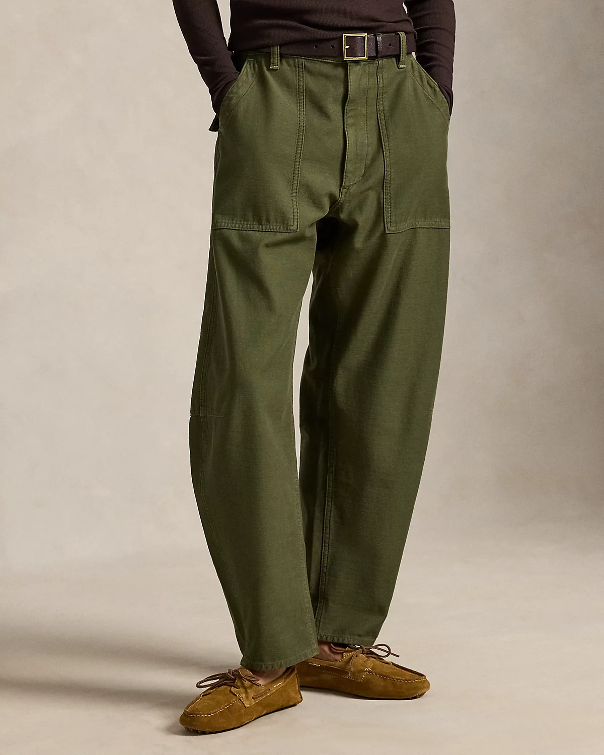 Crafted with smooth cotton sateen, our signature Ricky pant is updated for the season with a relaxed, tapered shape. It’s detailed with adjustable div tabs at the waist and utility-inspired pocketing.