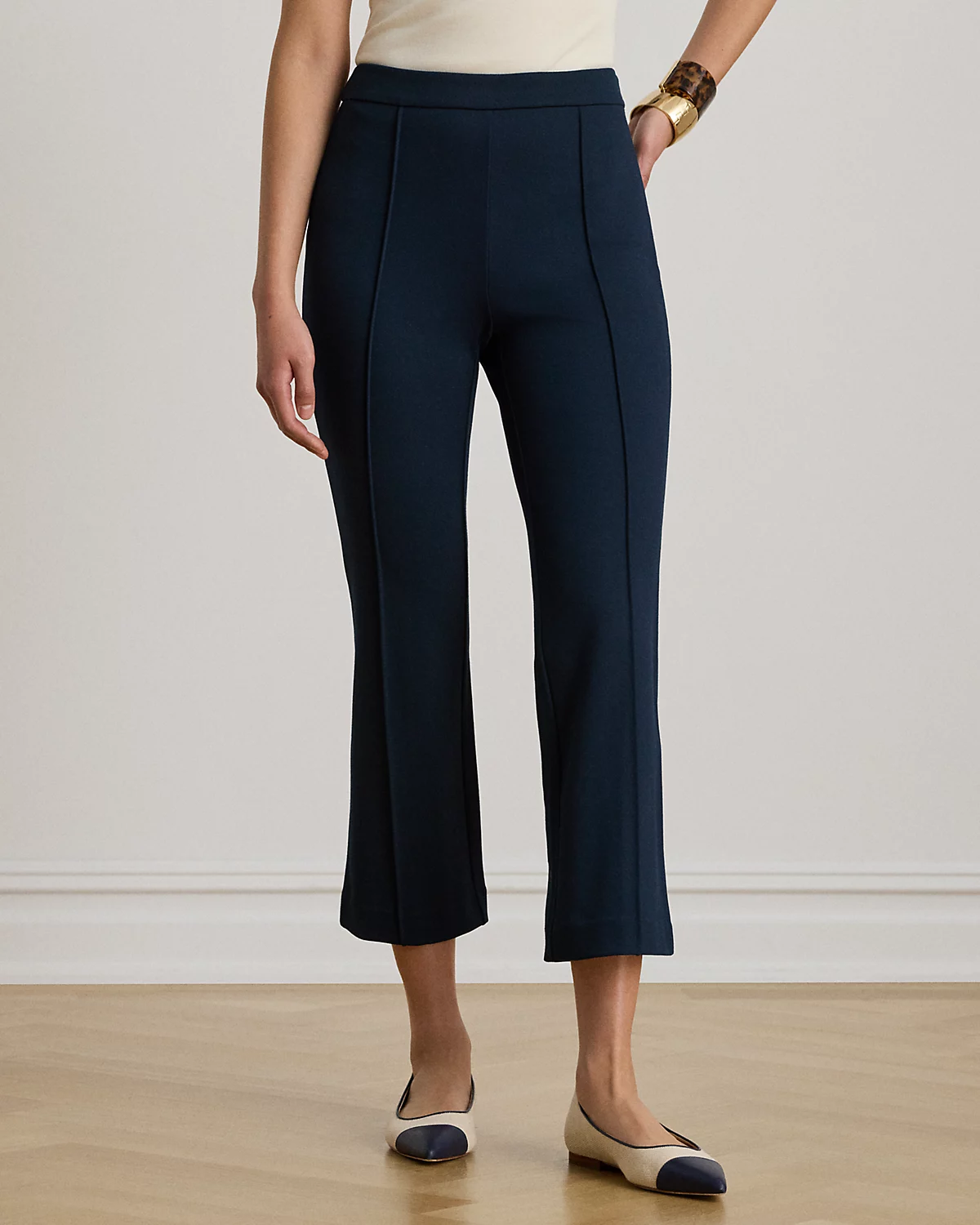 These stretch-infused twill ankle pants showcase a flare silhouette with vertical pintucks along the front and back for a modern take on a tailored essential.