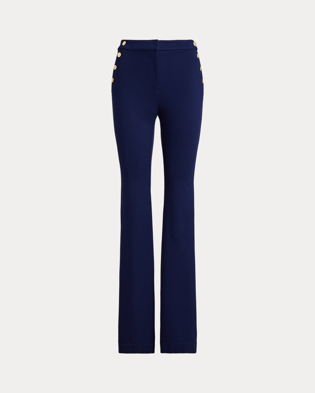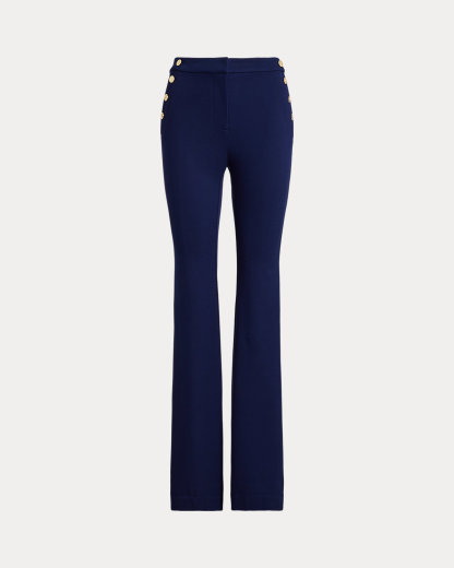 Tailored from smooth stretch twill, these high-rise boot pants showcase a nautical-inspired bib front and “LRL”-engraved divs. Back waist darts and crisp creases at each leg complete the look.