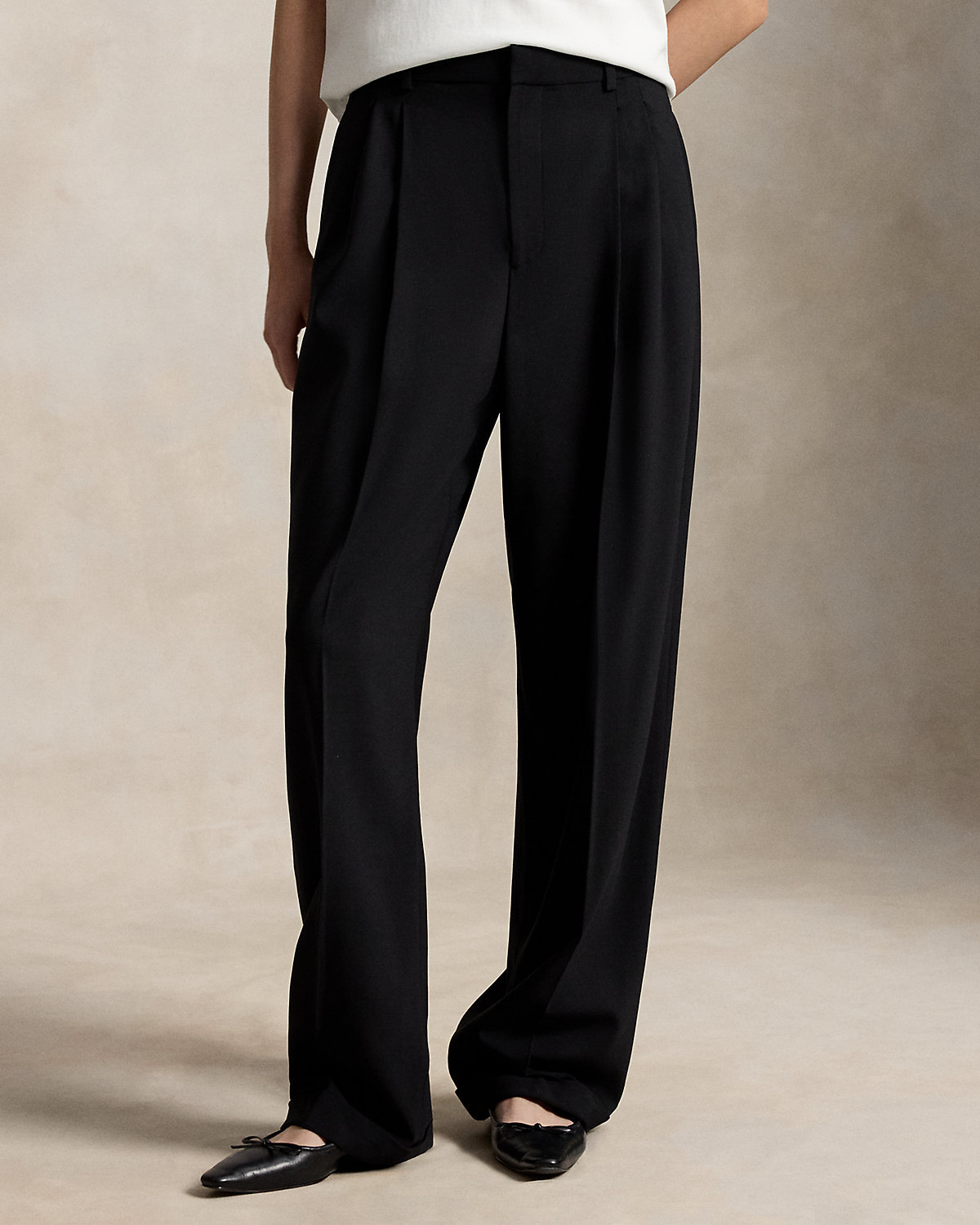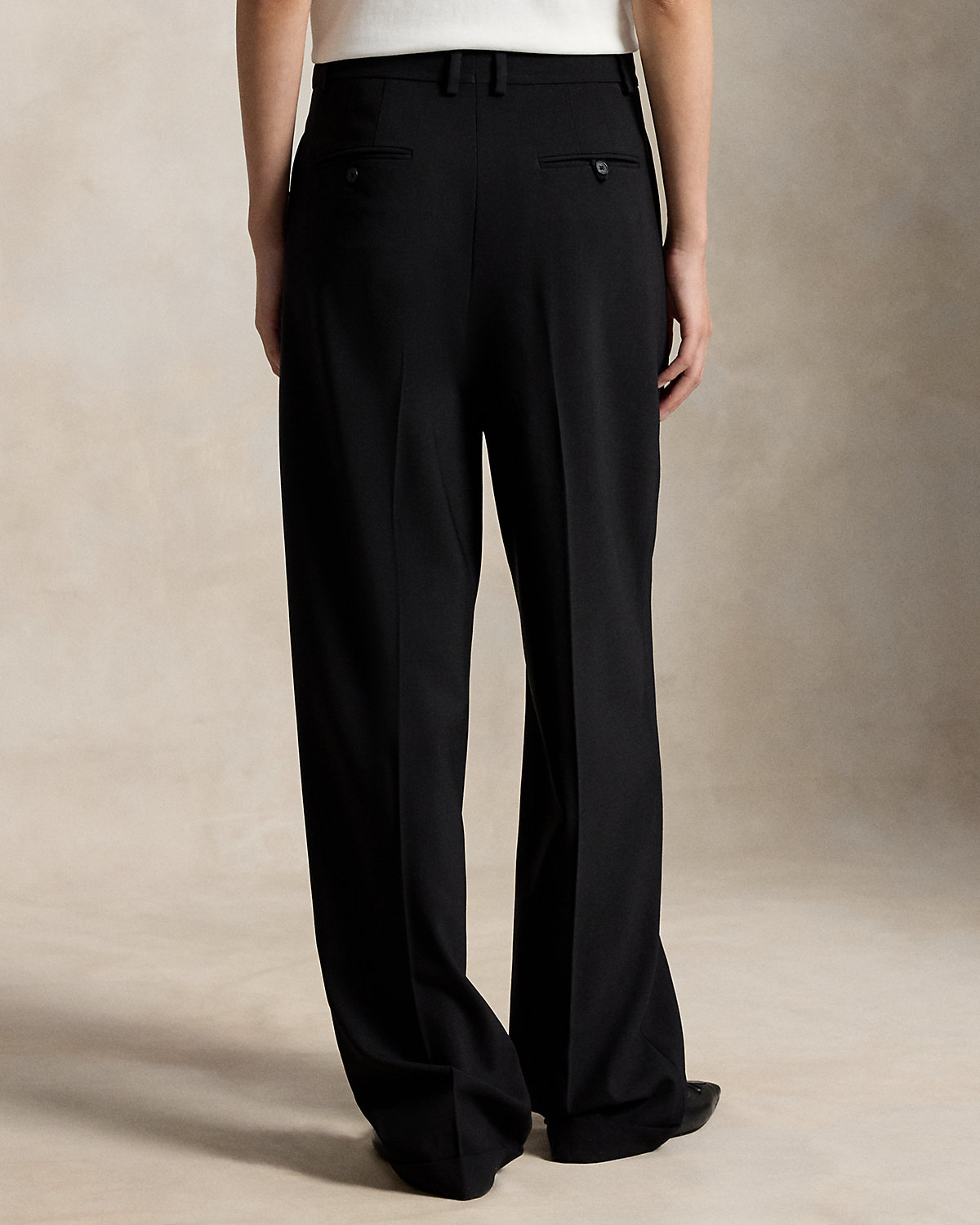 - High-rise. Wide-leg silhouette. Intended to hit below the ankle.
