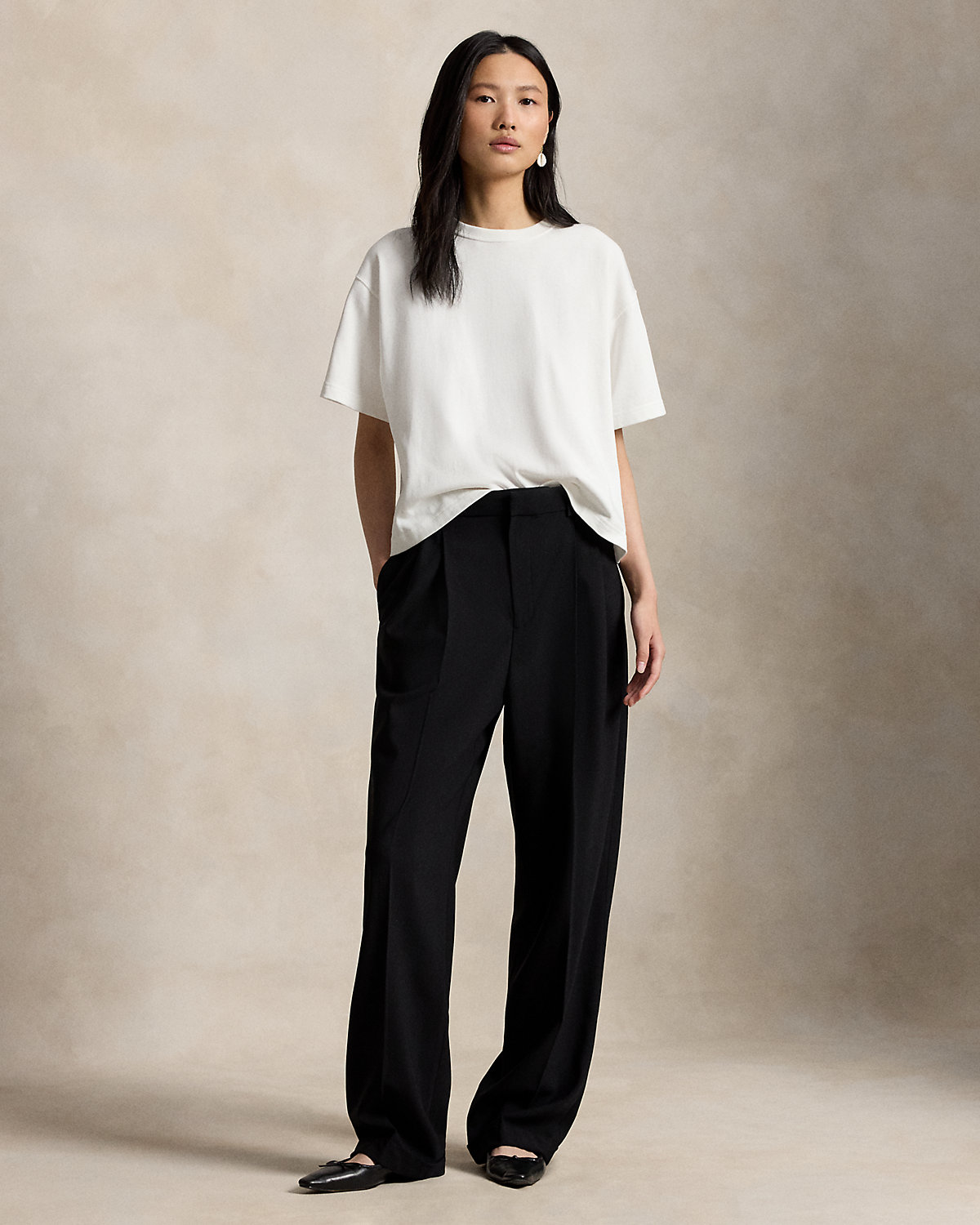 Made with medium-weight Italian stretch-wool faille, these pants combine a tailored fit and fluid, wide-leg silhouette. Pressed creases and folded cuffs complete the look.