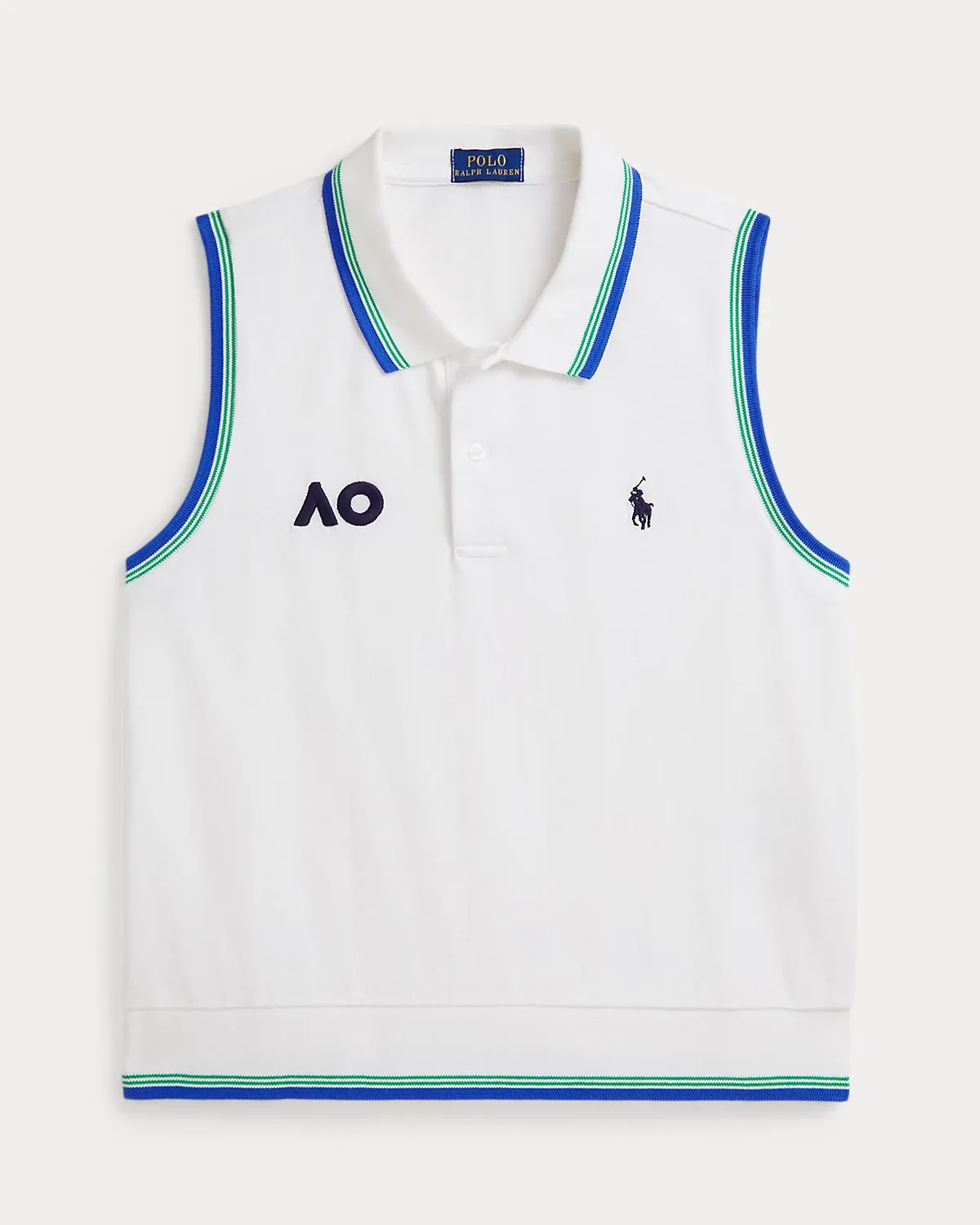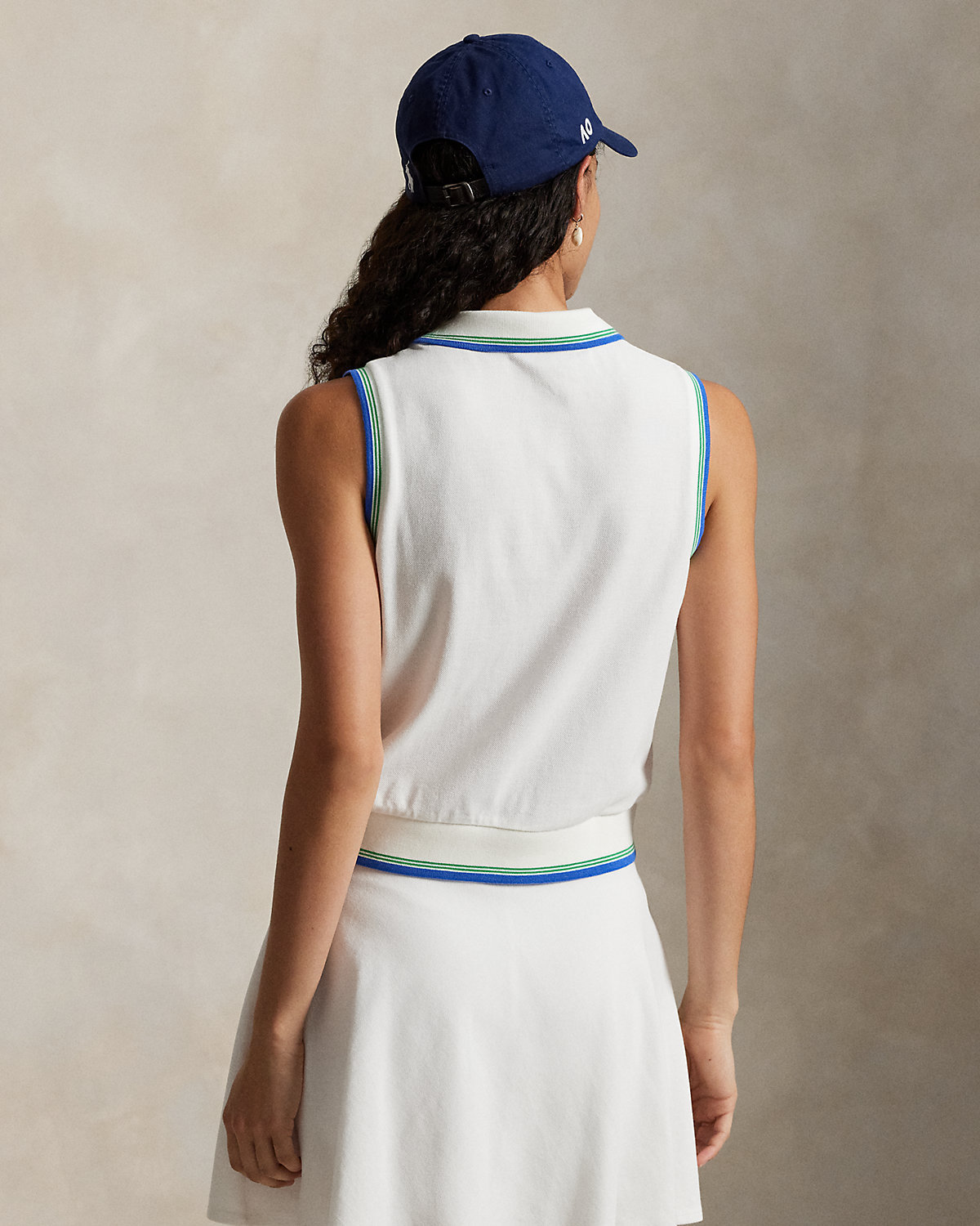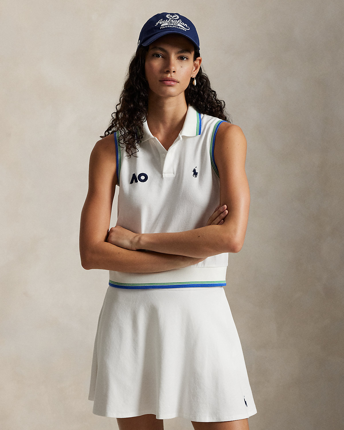 Part of our commemorative Australian Open capsule collection for 2026, this cotton piqué sleeveless Polo shirt is designed for a cropped fit and is embroidered at the chest with the iconic tournament’s official logo and Ralpthth Lauren’s signature Pony.