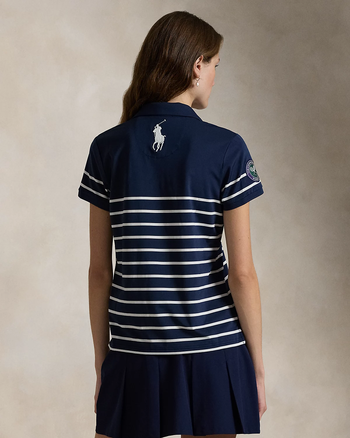 - Signature embroidered Big Pony at the left chest and center back of the neck. Official "The Championships Wimbledon" logo patch at the right sleeve.