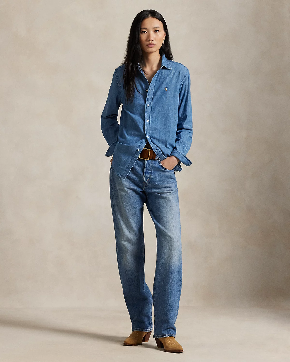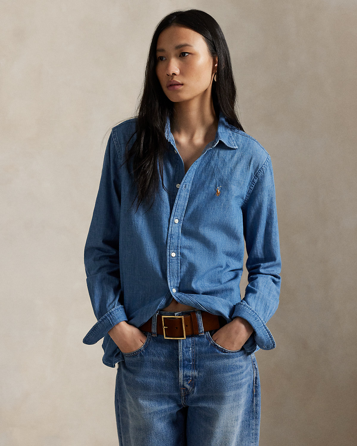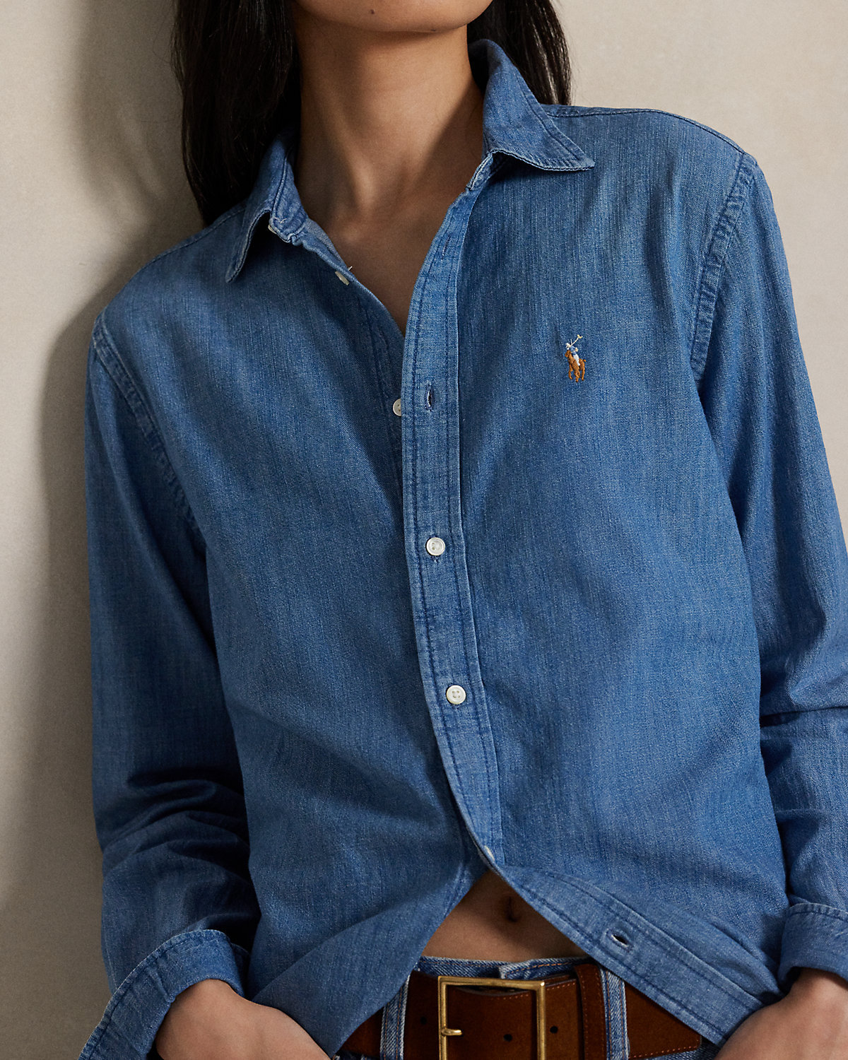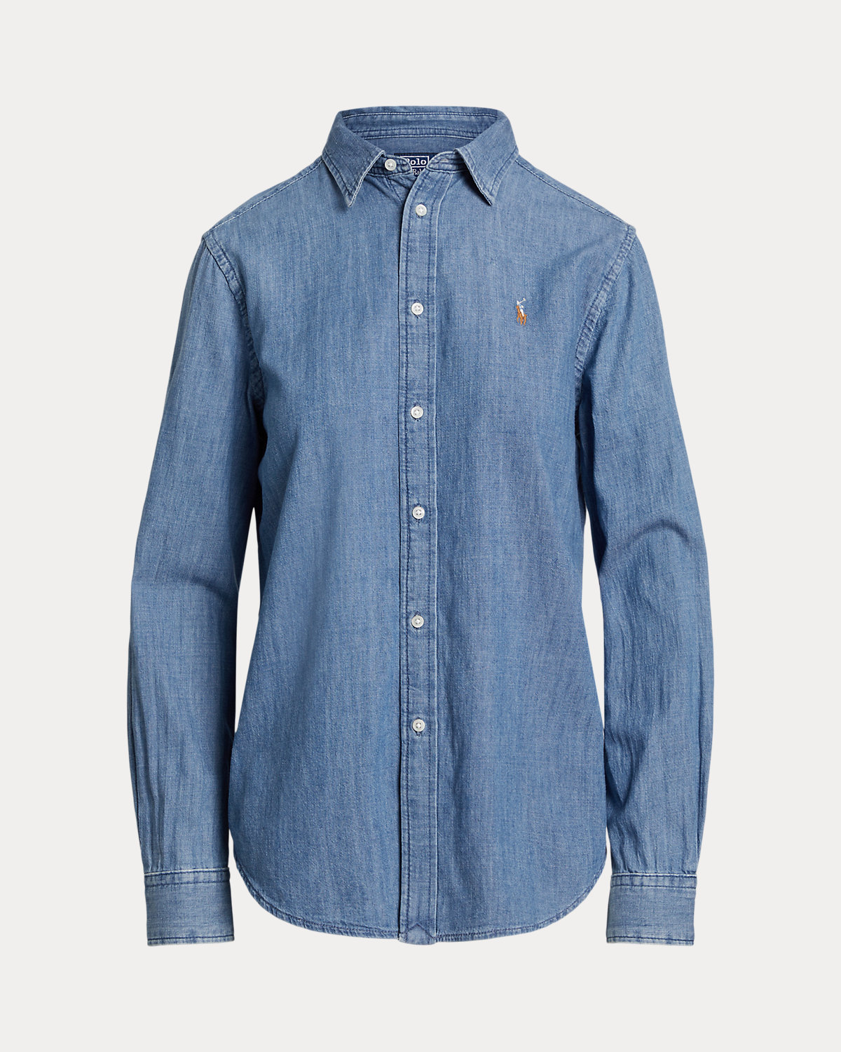Cut for a straight silhouette, this denim shirt is crafted with cotton right-hand twill to achieve a soft drape and versatile weight. It’s washed for a medium indigo hue and embroidered with our signature Pony at the chest.